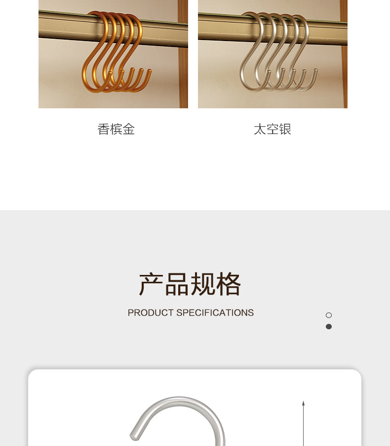 Крючок S из алюминиевого сплава, большой [золотой]; Крючок S из алюминиевого сплава большой [серебристый]; Крючок S из алюминиевого сплава среднего размера [золото]; Крючок S из алюминиевого сплава среднего размера [серебро]; Крючок S из алюминиевого сплава, маленький [золото]; Крючок S из алюминиевого сплава, маленький [серебристый]