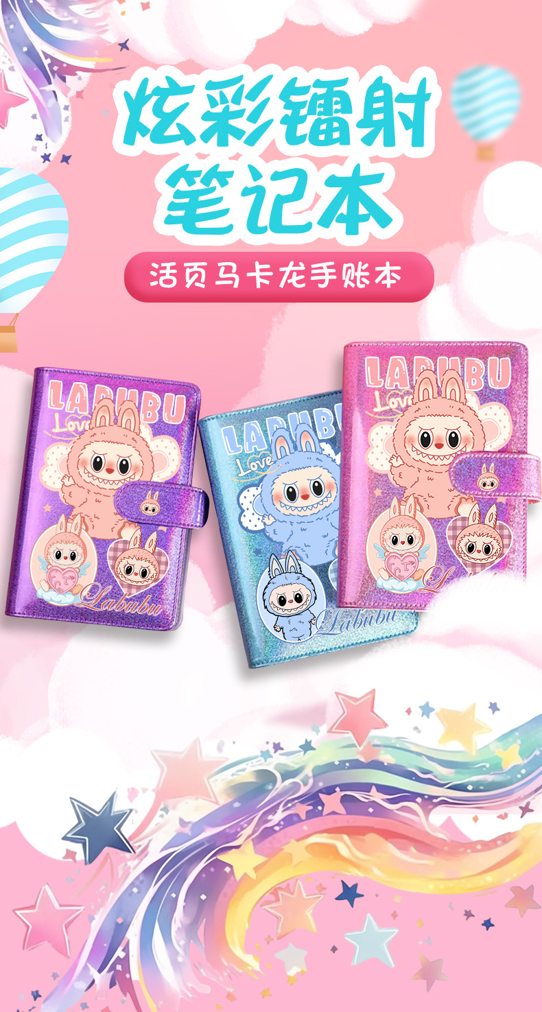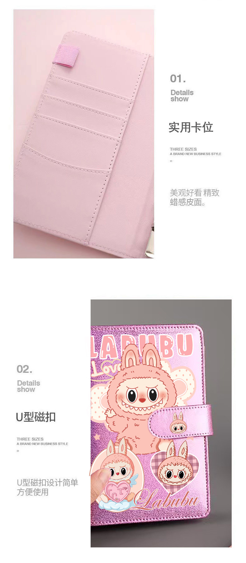 Ручная книга Labubu, милый студенческий дневник Labubu, тетрадь в линейку, тетрадь с отрывными листами, красивый магнитный присосок