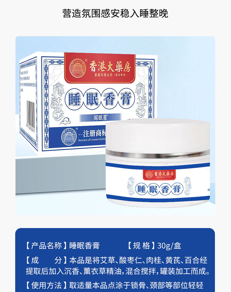 Гонконгский аптечный бальзам для сна, травяной крем для сна, крем для сна для наружного применения, для домашнего использования, крем для спокойного сна на ночь.
