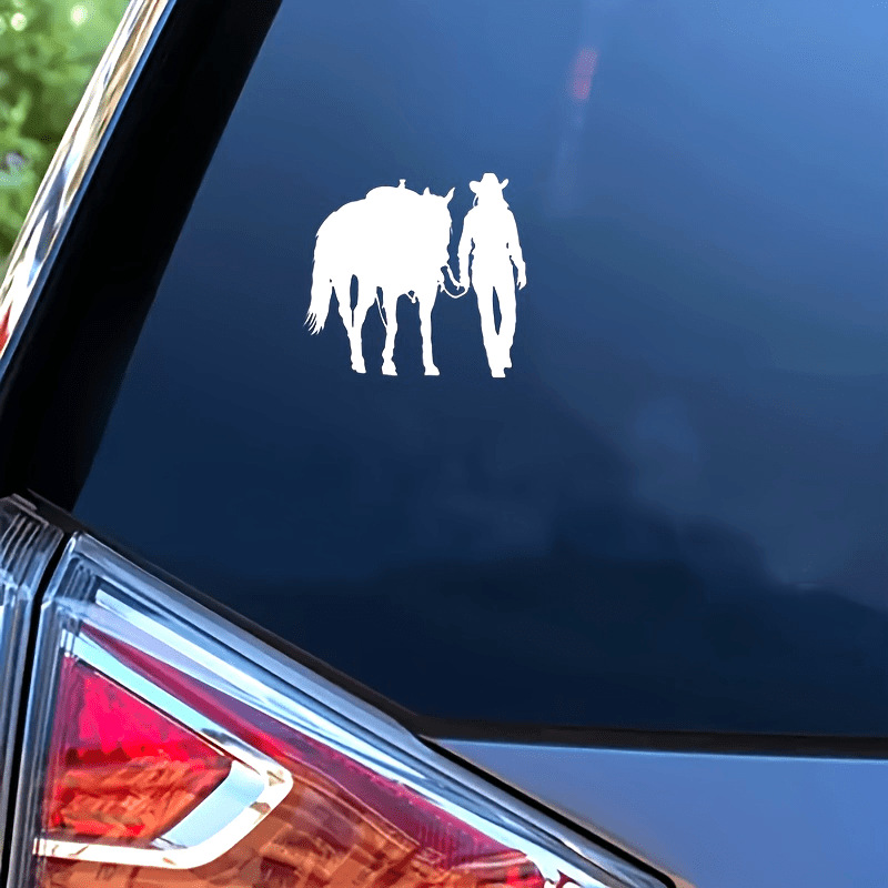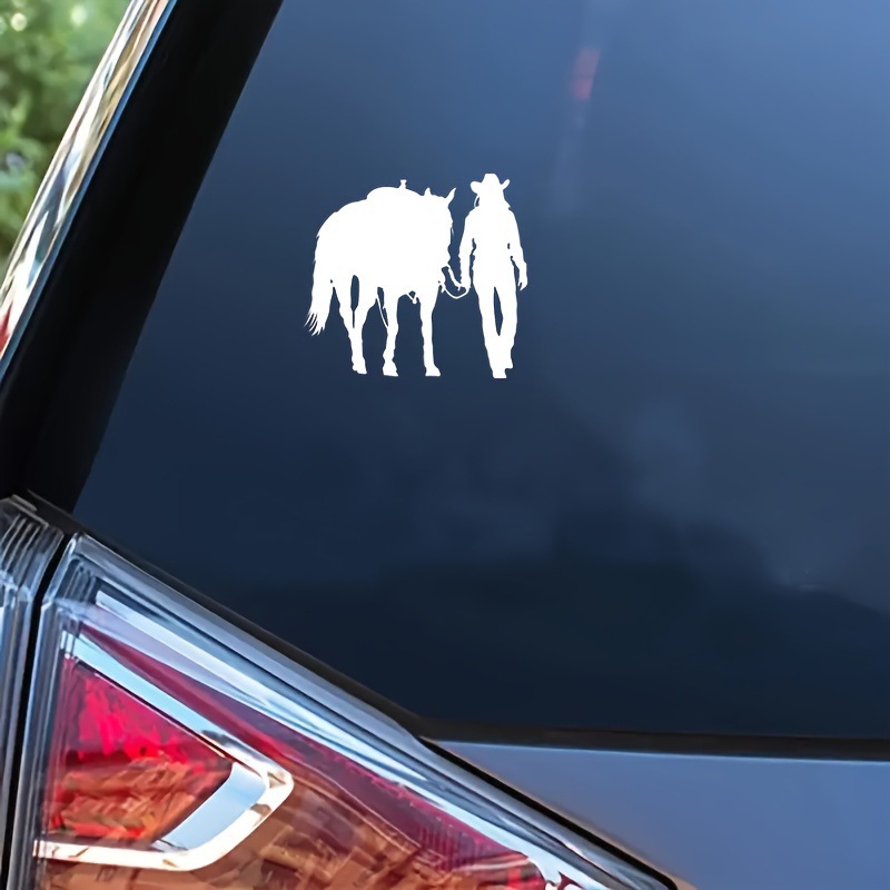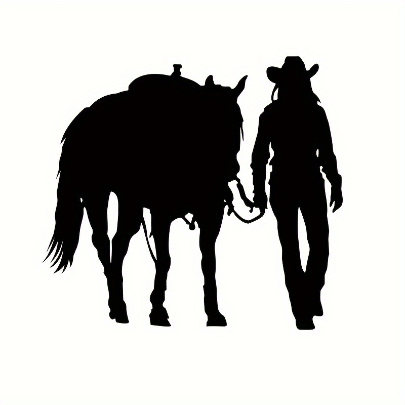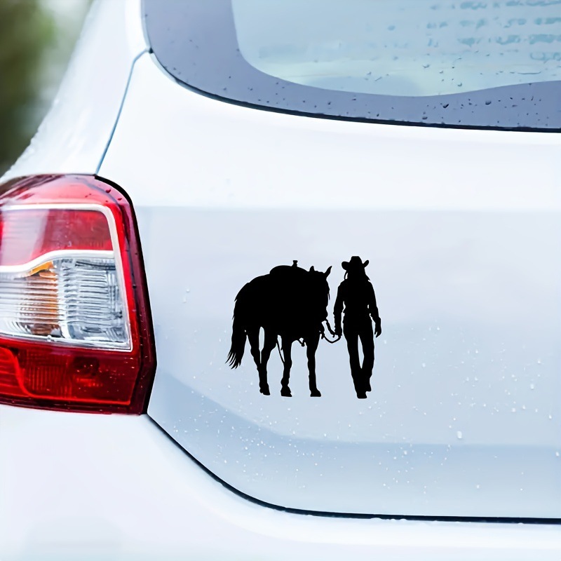 Наклейки на авто с черными силуэтами: ковбойка и лошадь, виниловые, для трансграничной торговли (TEMU, Amazon)