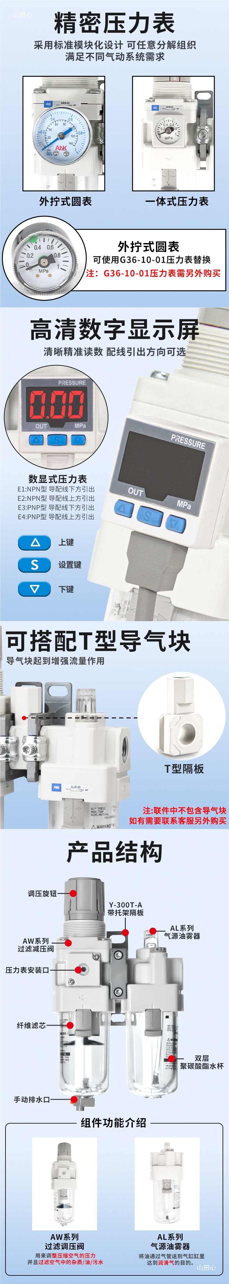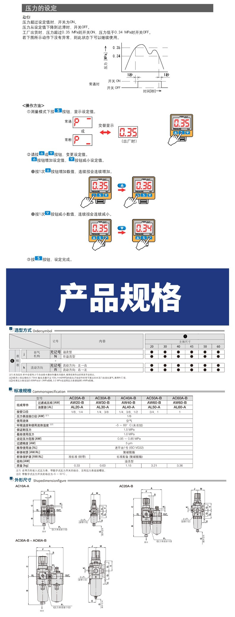 Обработка воздушного источника Масло-водоотделитель типа SMC AC20A/30A/40A-02/03/04BG/E Фильтр регулирования давления