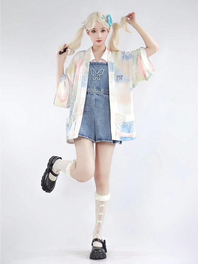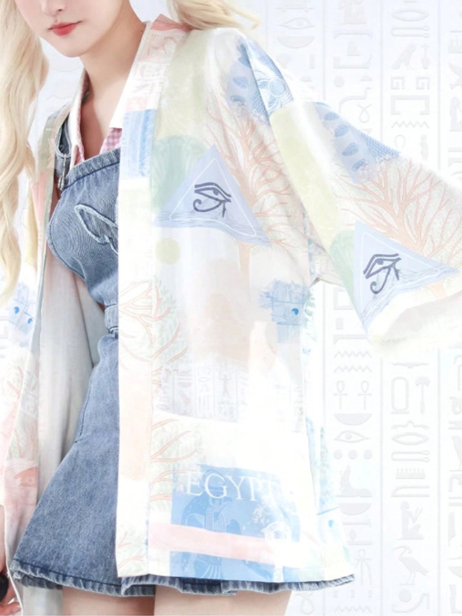 Кимоно-кардиган хаори, двумерный косплей «Глаз Гора», летняя тонкая шаль в морском солевом стиле с большими рукавами