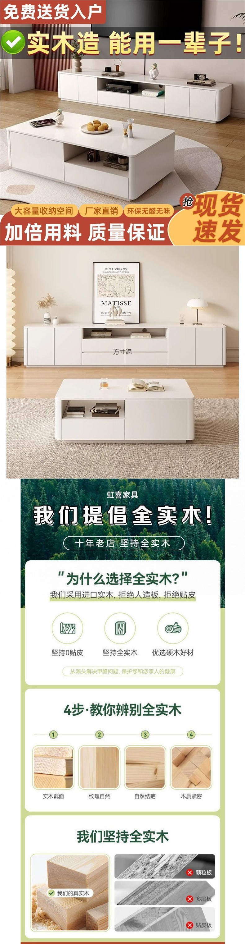 Новый журнальный столик из цельного дерева, шкаф для телевизора, напольный комбинированный домашний журнальный столик для гостиной, небольшой квартиры, простой журнальный столик в кремовом стиле, шкаф для телевизора