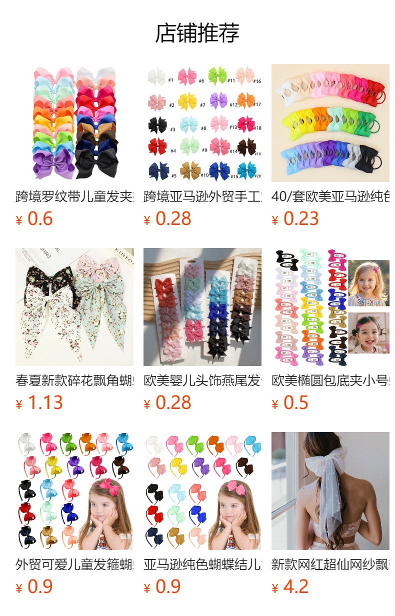 【名称】跨境热销60pcs30色手工宝宝燕尾3英寸罗纹蝴蝶结发夹发饰儿童头饰
