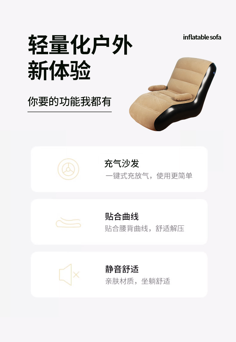 Надувной диван-шезлонг S-образной формы для обеденного перерыва, кемпинга на природе, портативный складной диван с флокированием для использования на улице