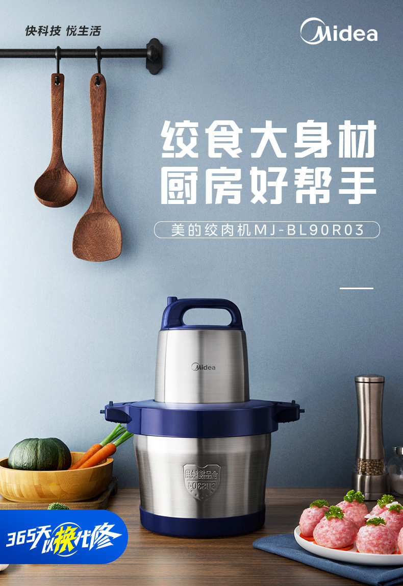 Мясорубка Midea, бытовая, большая мощность, коммерческая электрическая мясорубка из нержавеющей стали BL90R03