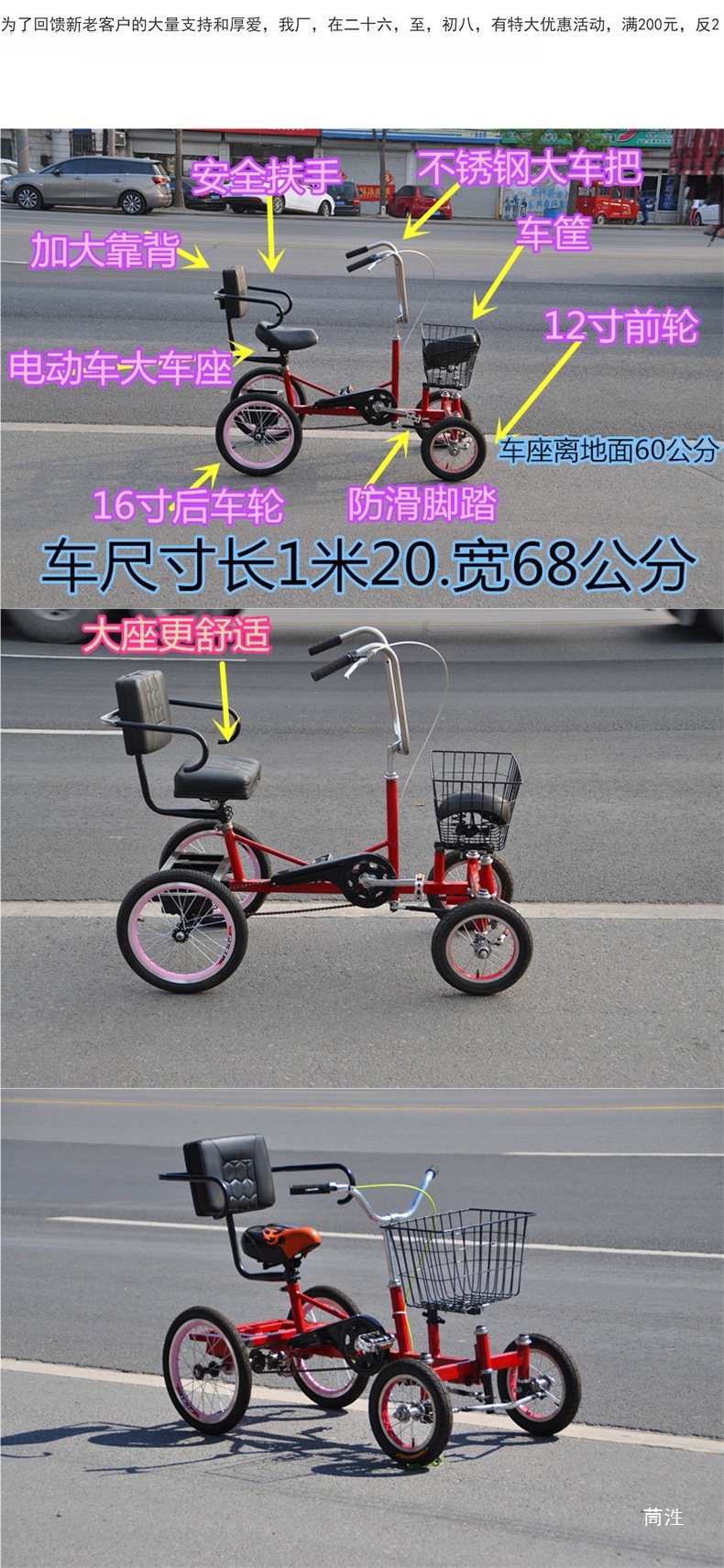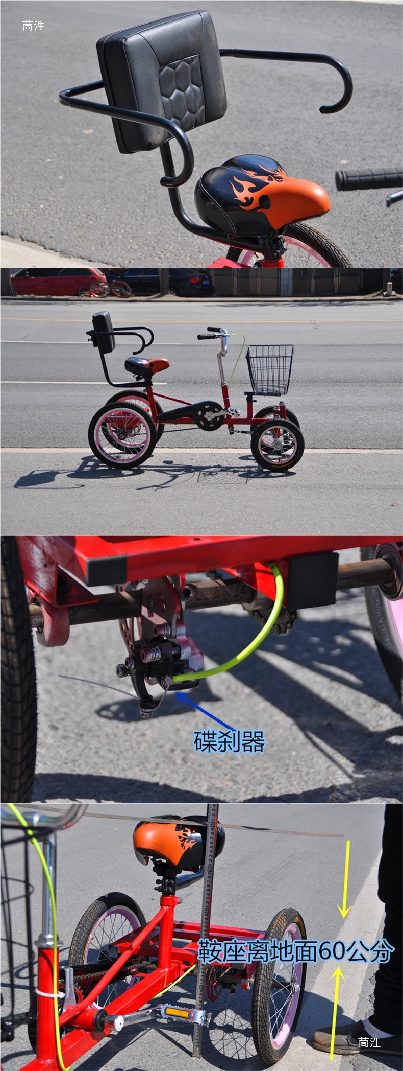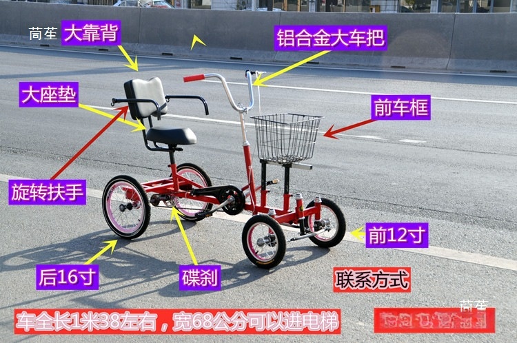 Трехколесные, четырехколесные, небольшие велосипеды с ручным приводом для людей среднего и пожилого возраста, реабилитационные четырехколесные скутеры, дисковые тормоза.