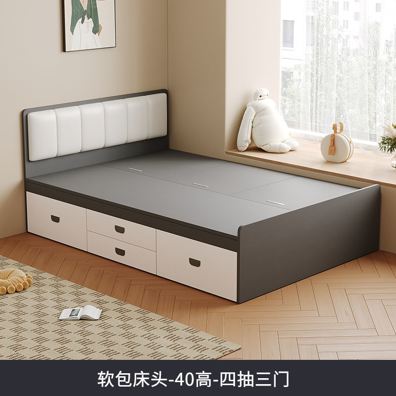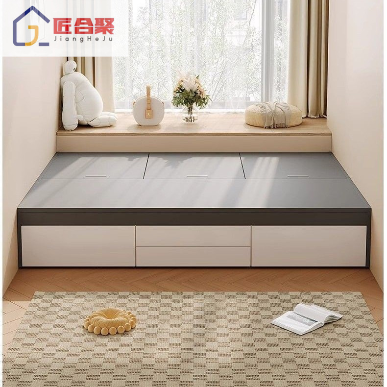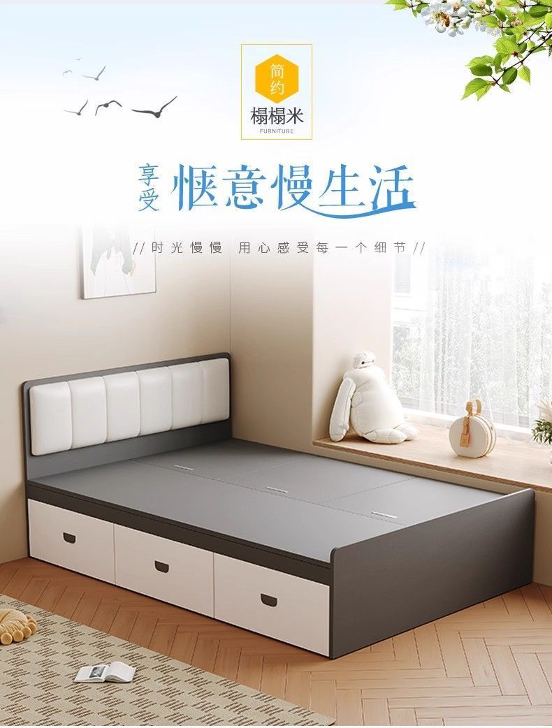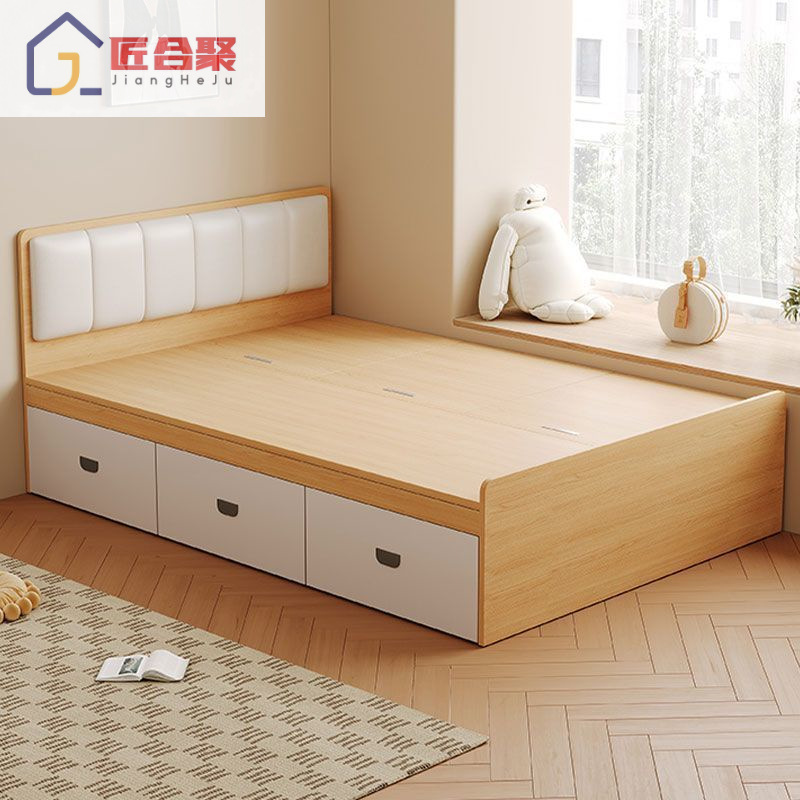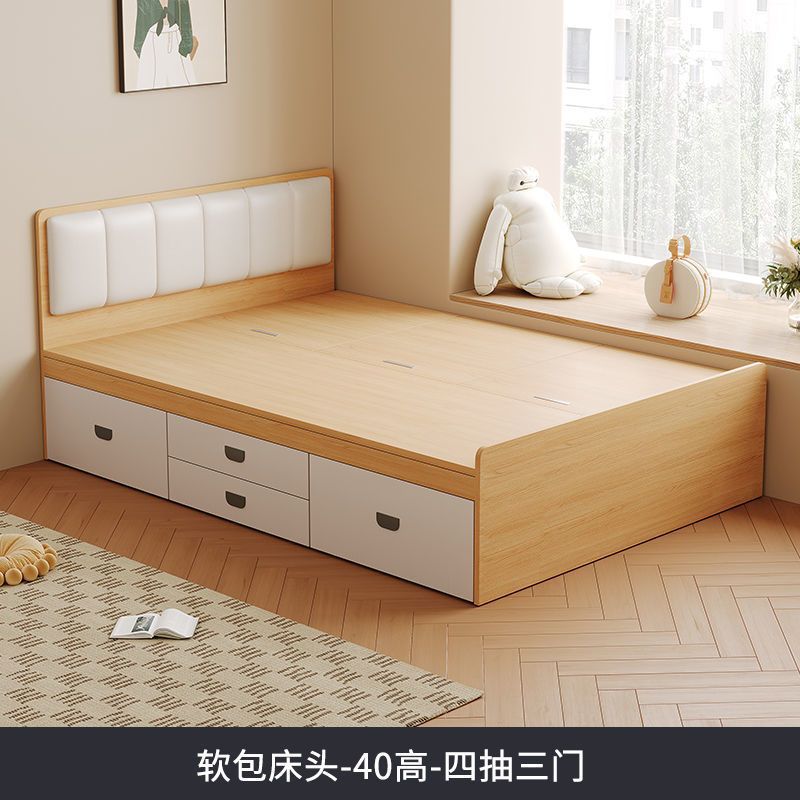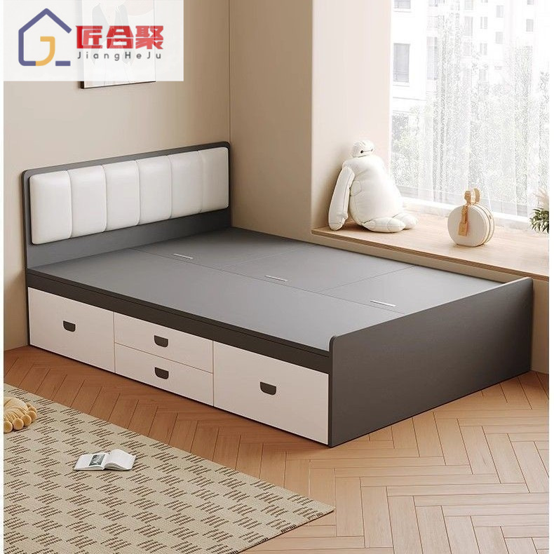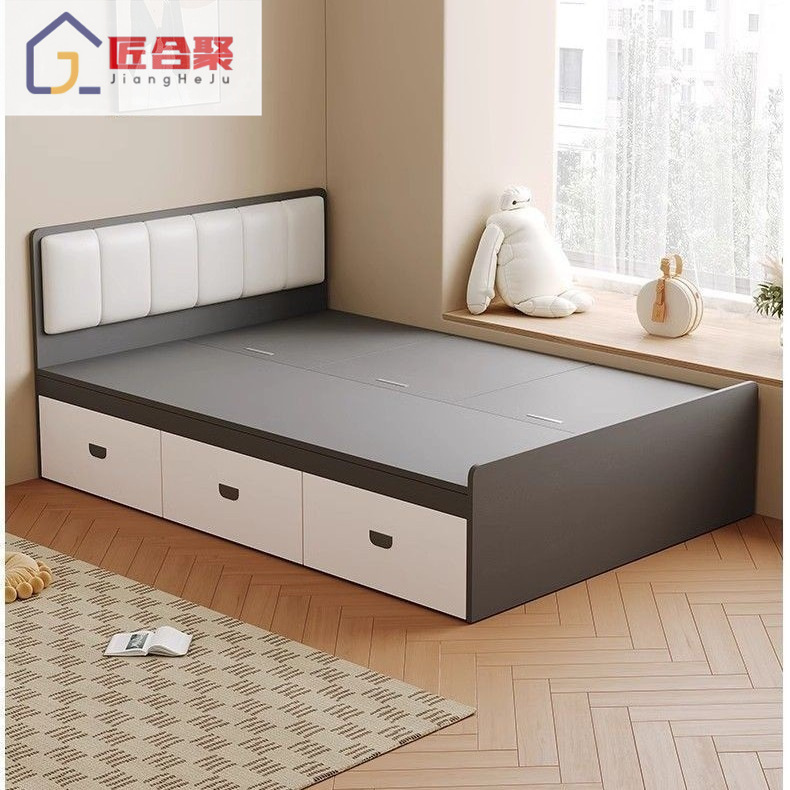 Современная простая кровать из цельного дерева, домашняя кровать с высоким ящиком для хранения, двуспальная кровать, маленькая квартира, односпальная кровать с ящиком для хранения, татами, кровать-бокс