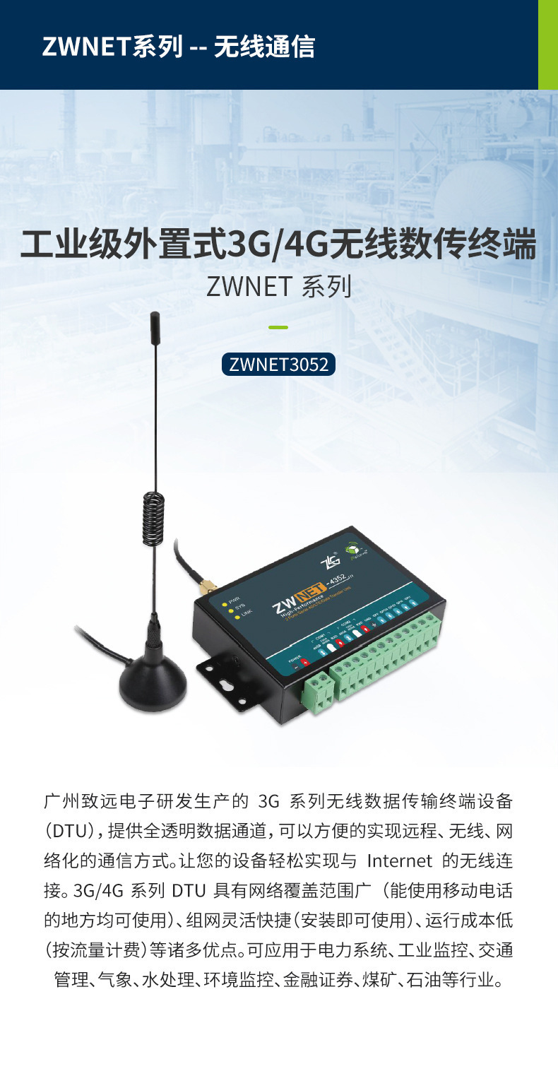 ZLG Zhiyuan Electronics промышленный внешний терминал беспроводной передачи данных 3G/4G, оборудование DTU серии ZWNET