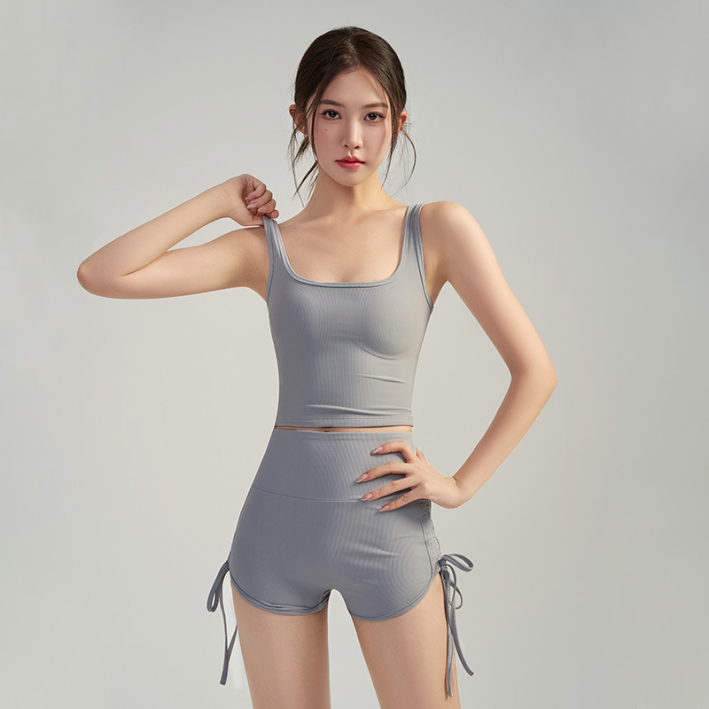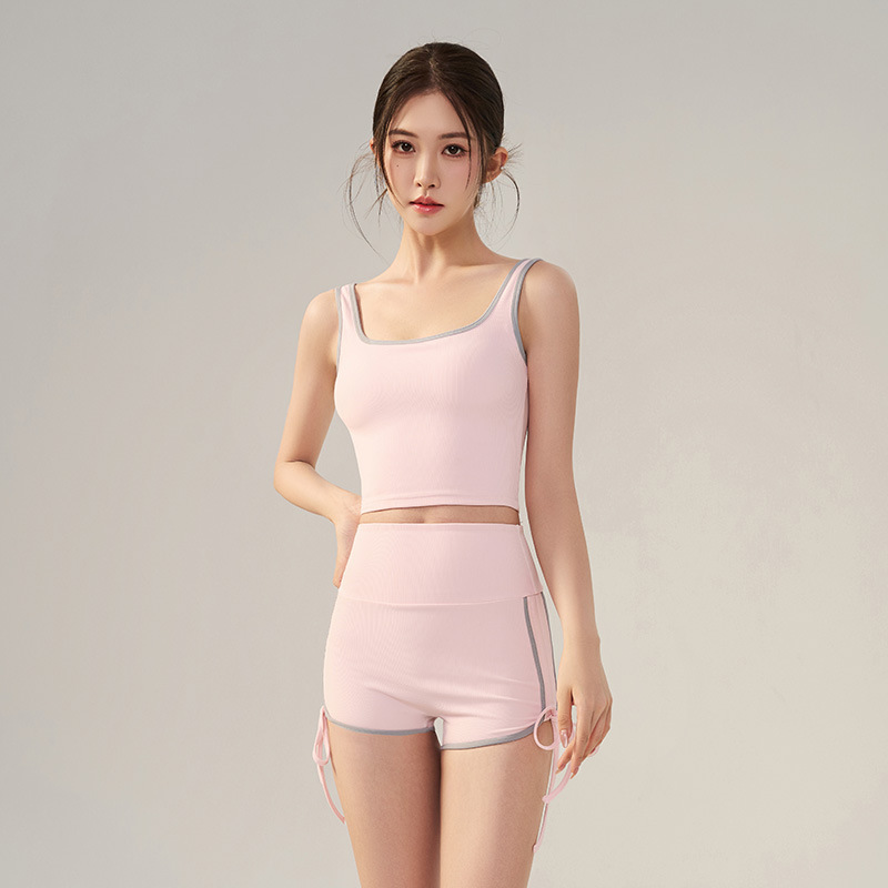 Новый летний комплект для йоги: облегающий и стройнящий, с подкладками для груди, универсальный спортивный и повседневный топ, комплект для пилатеса из двух предметов.