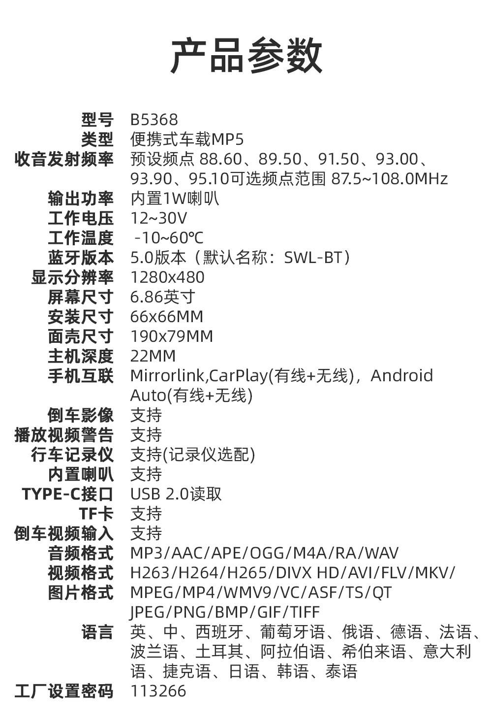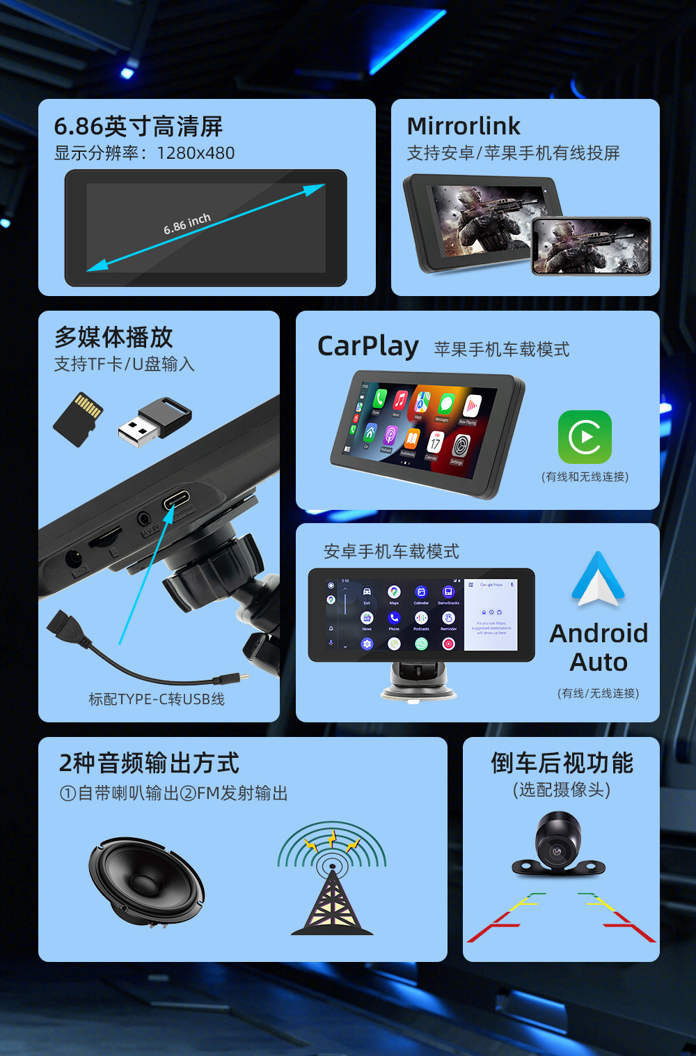 Портативный автомобильный MP5-плеер Cross-border 6.86inch с поддержкой CarPlay, беспроводной проекцией экрана высокой четкости, умное устройство для автомобиля