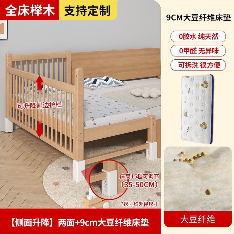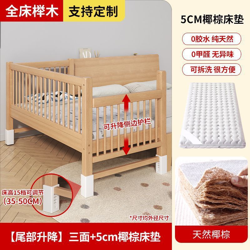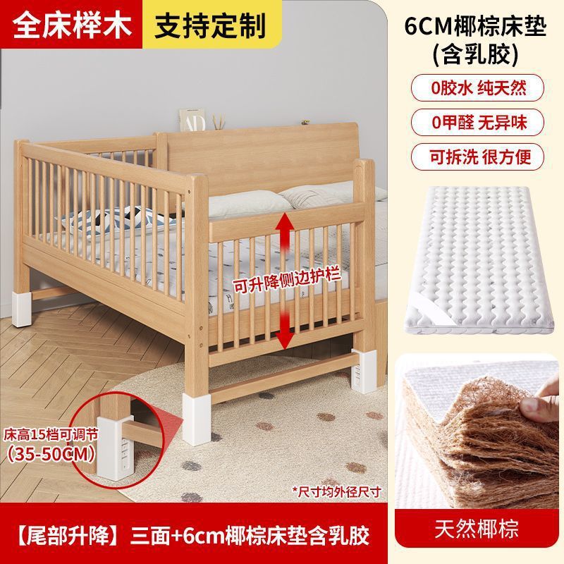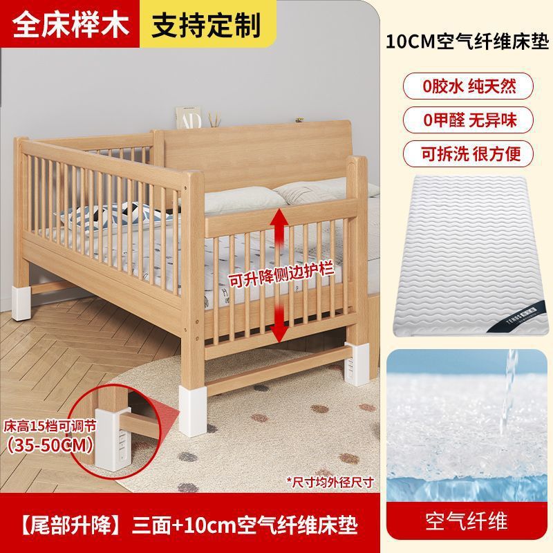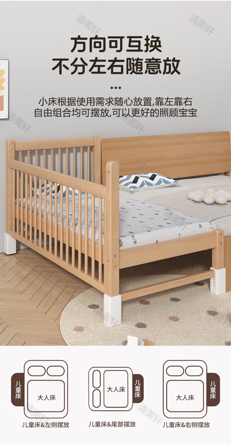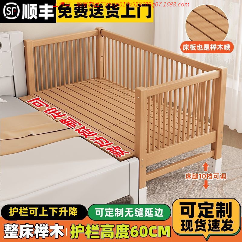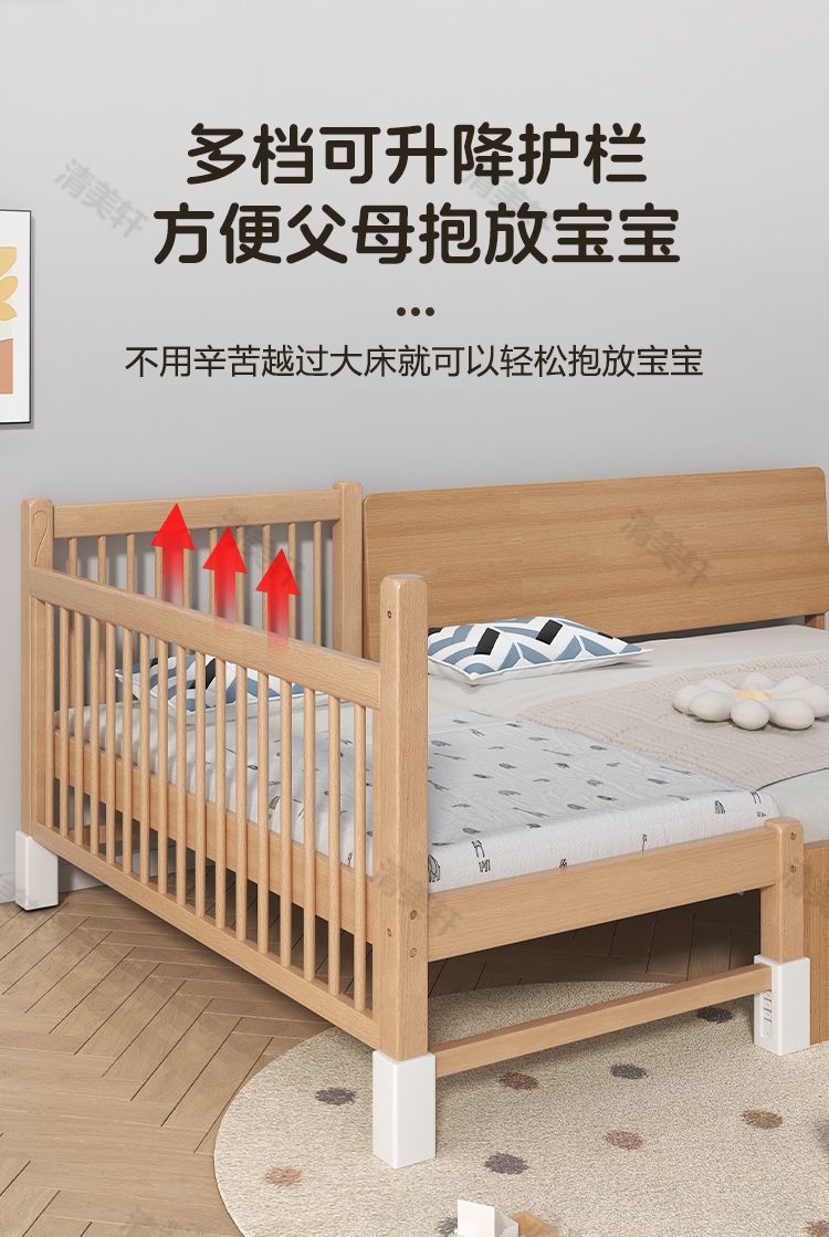 Детская кровать из бука, расширенная прикроватная кроватка, регулируемое ограждение, детская кровать для мальчиков, большая детская кровать из цельного дерева