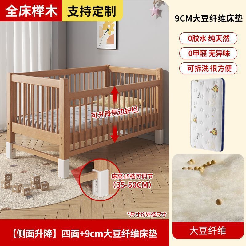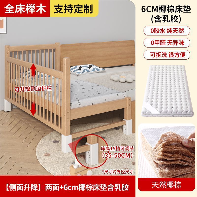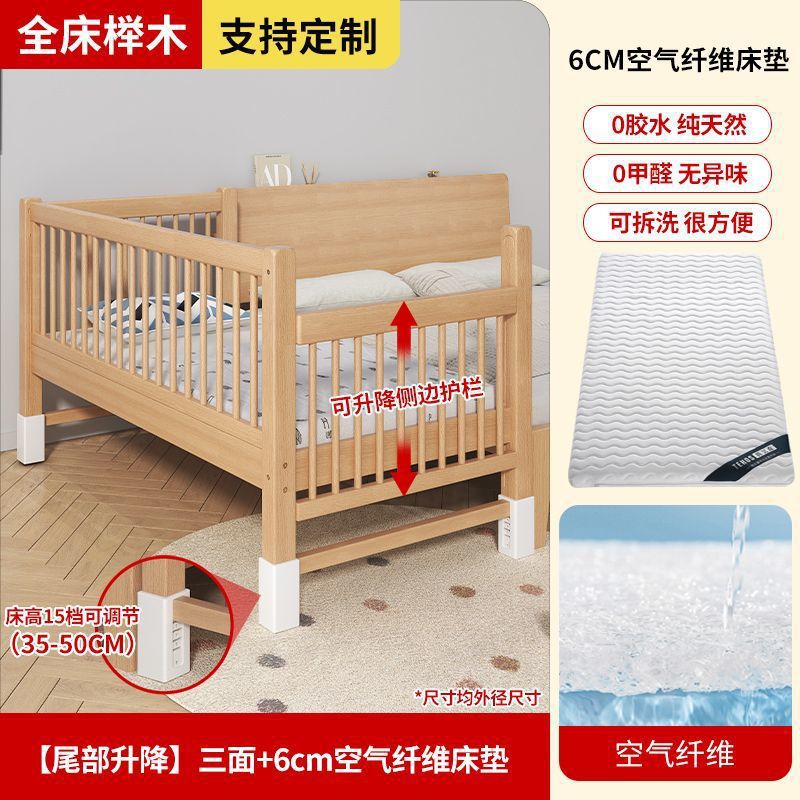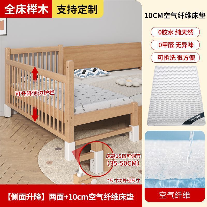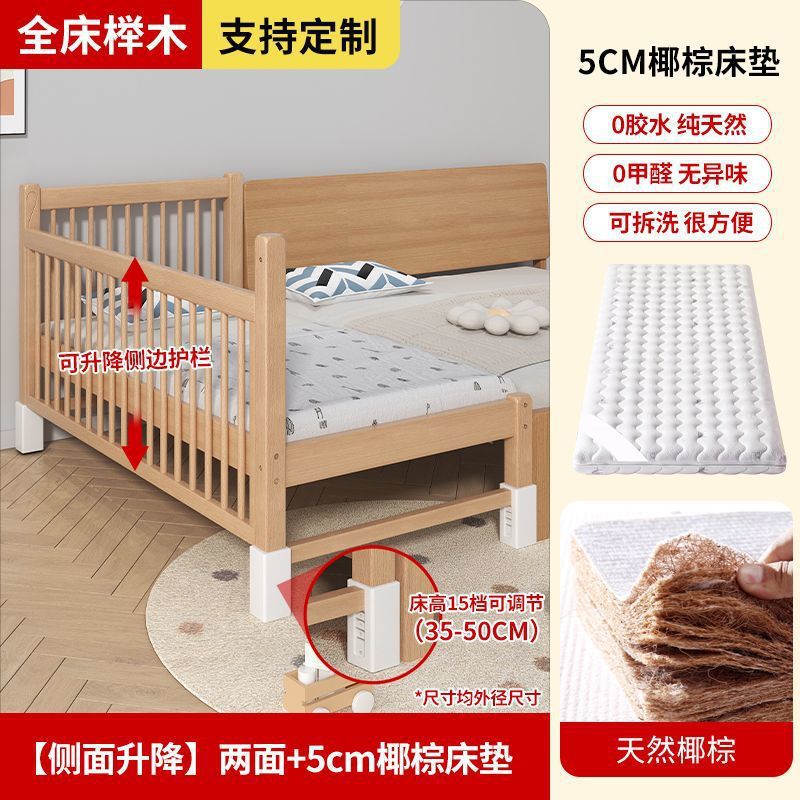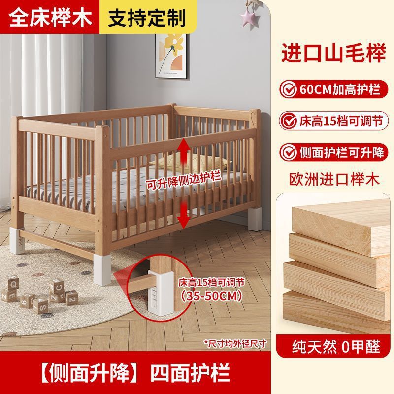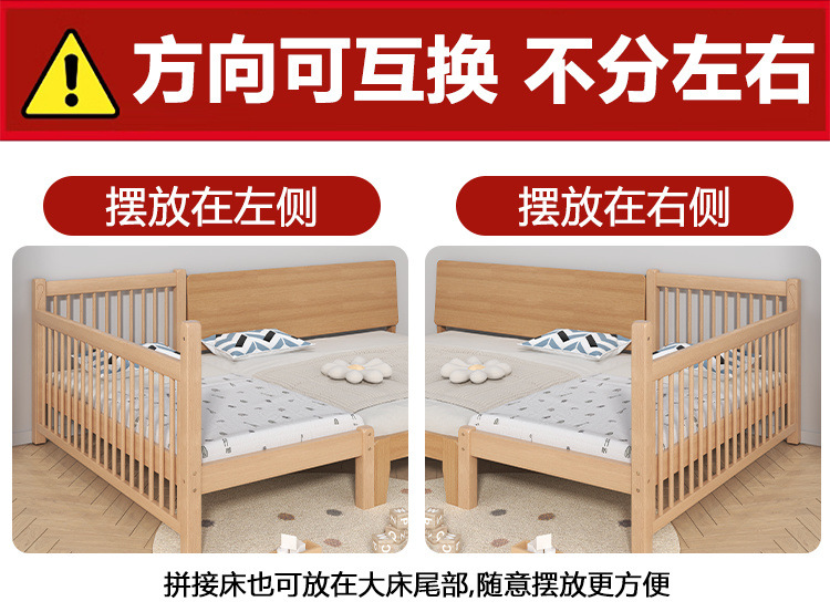 Детская кровать из бука, расширенная прикроватная кроватка, регулируемое ограждение, детская кровать для мальчиков, большая детская кровать из цельного дерева