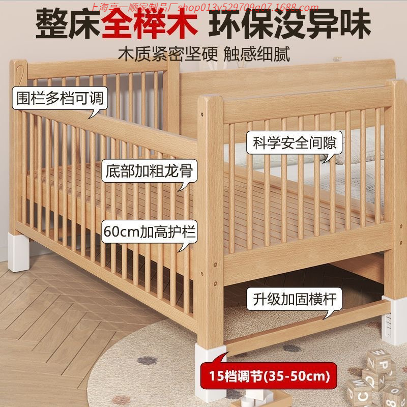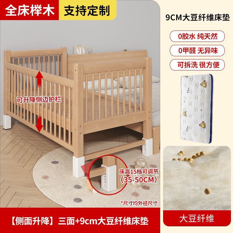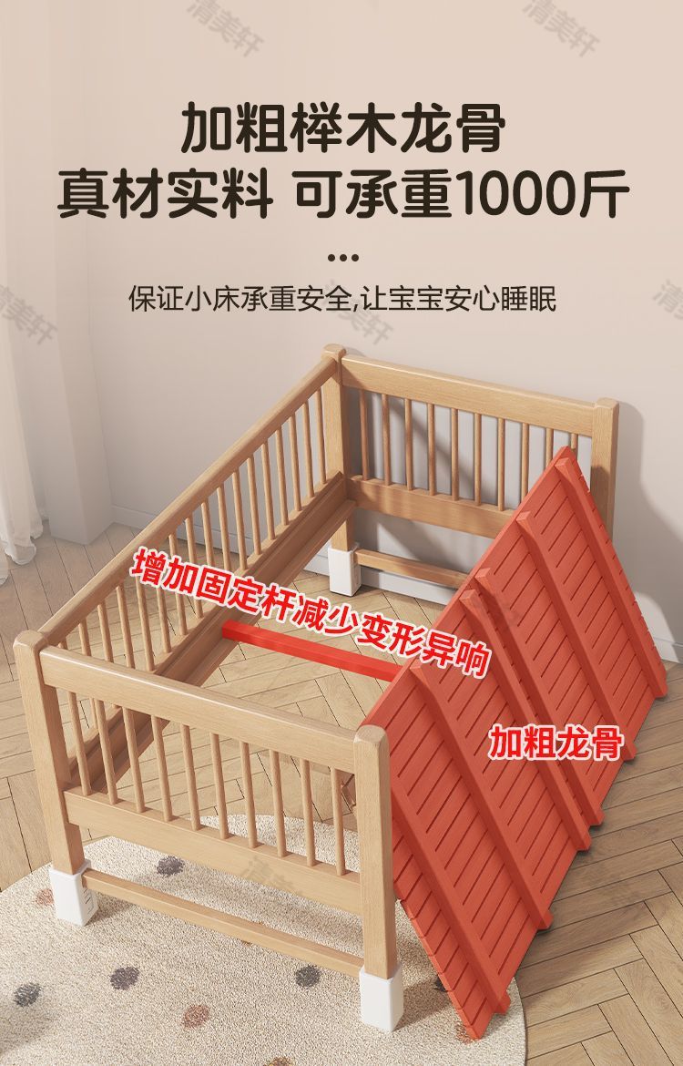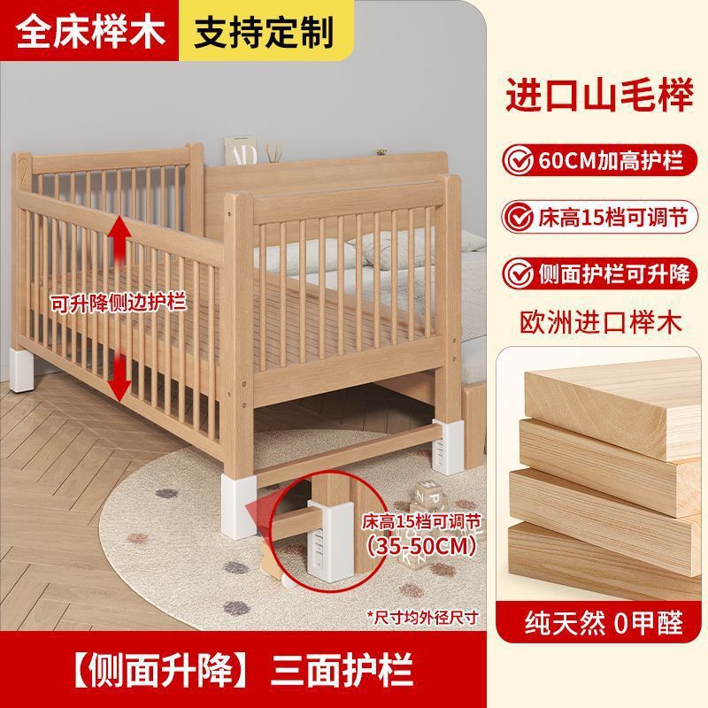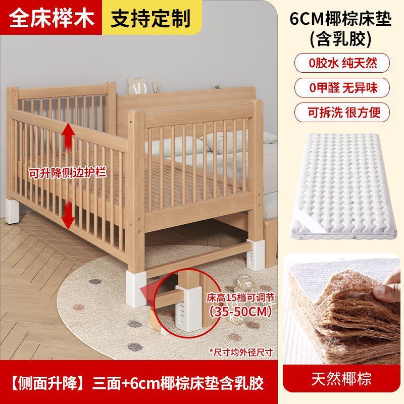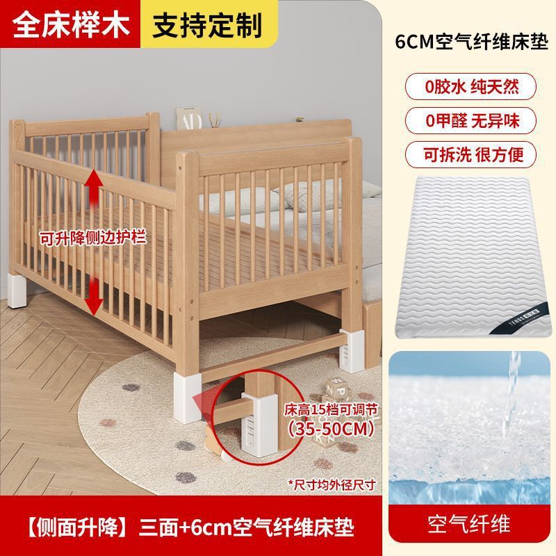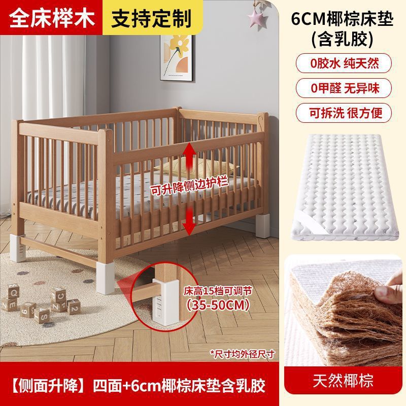 Детская кровать из бука, расширенная прикроватная кроватка, регулируемое ограждение, детская кровать для мальчиков, большая детская кровать из цельного дерева