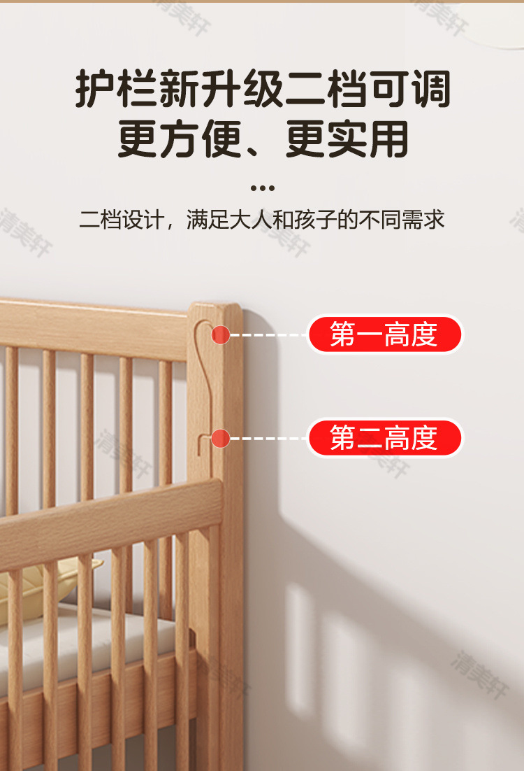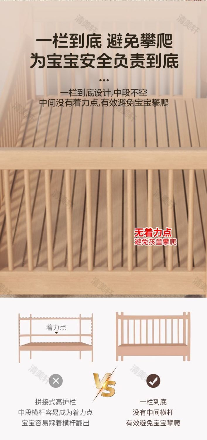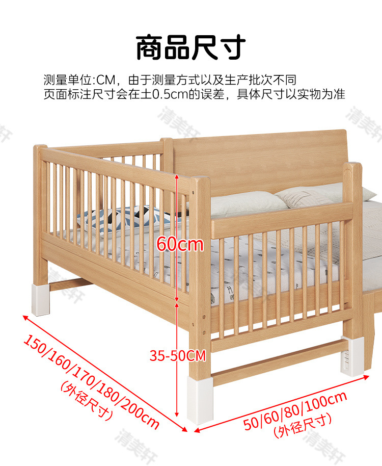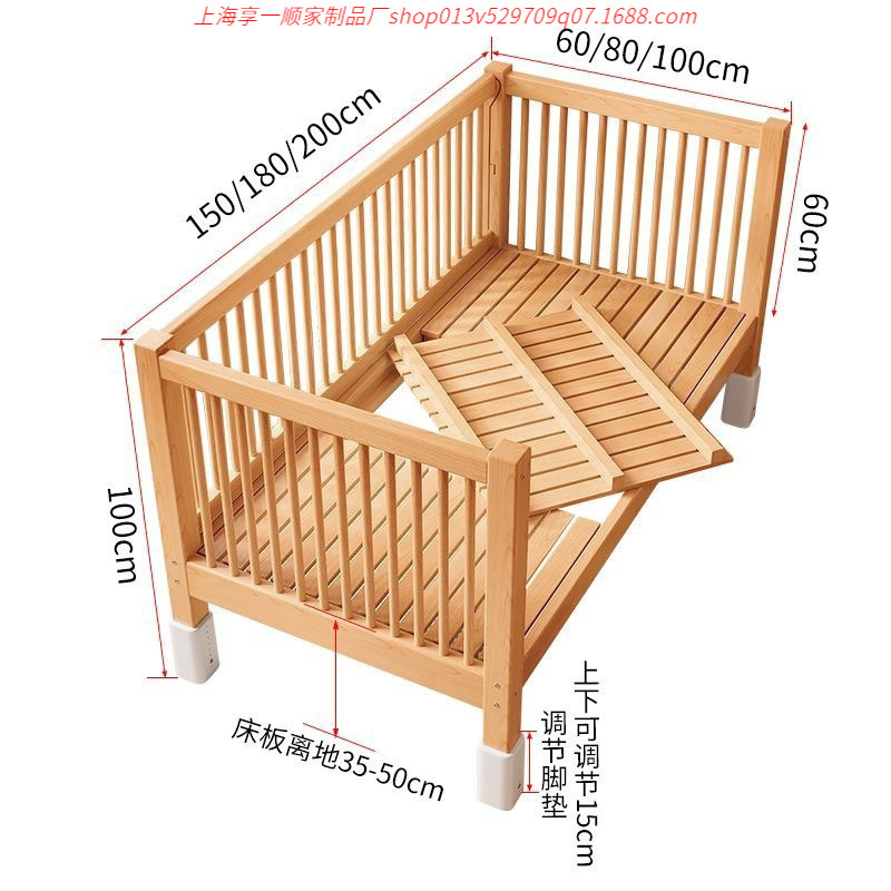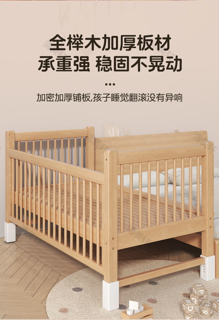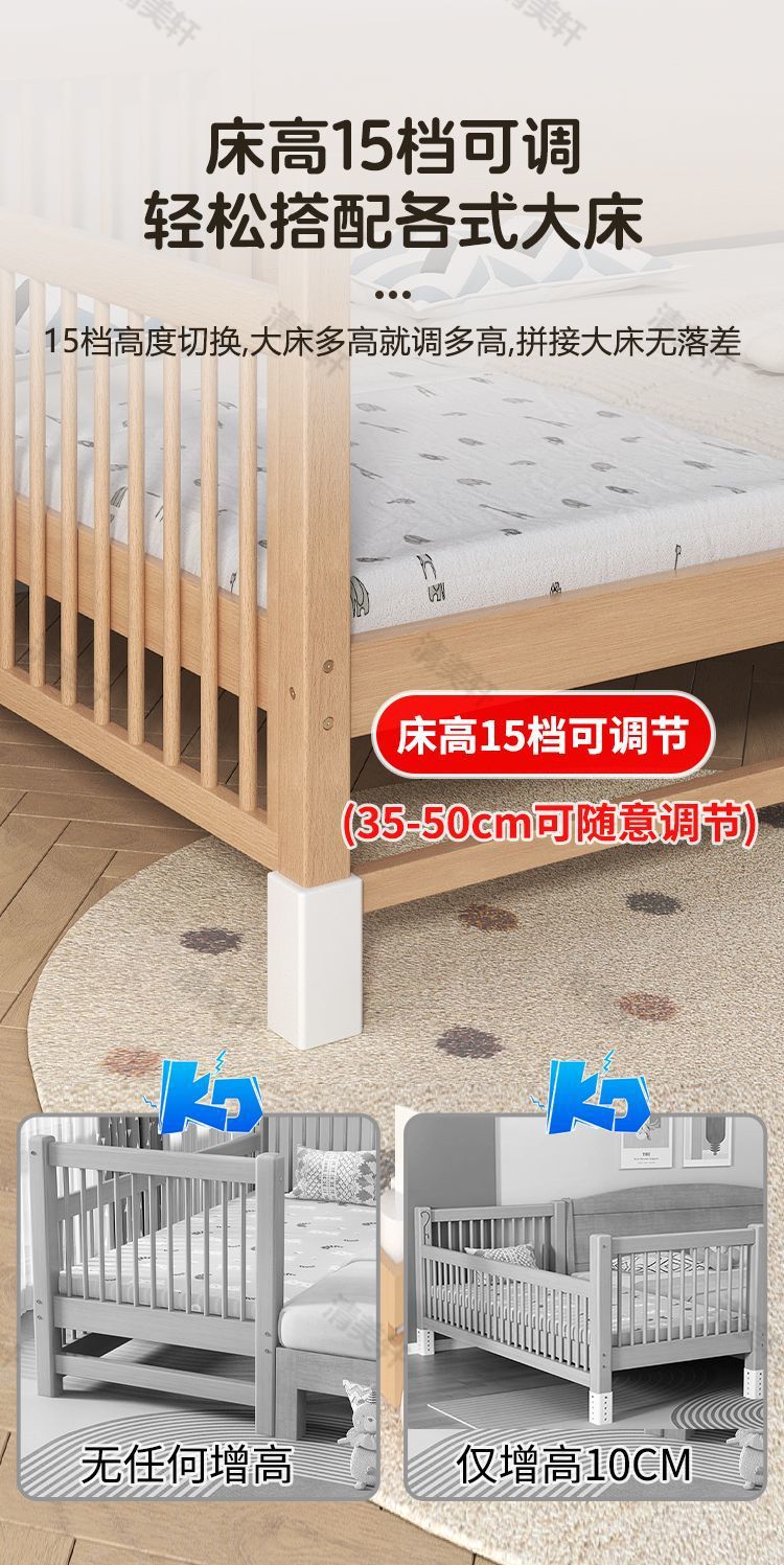 Детская кровать из бука, расширенная прикроватная кроватка, регулируемое ограждение, детская кровать для мальчиков, большая детская кровать из цельного дерева