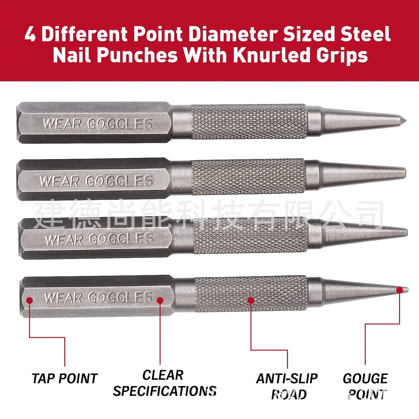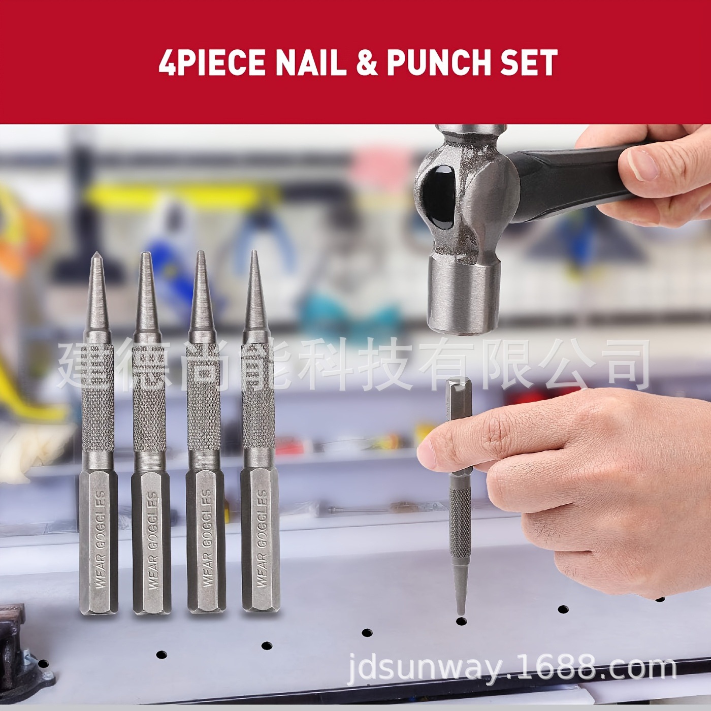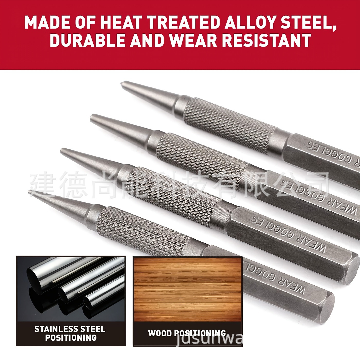 Набор из 4 предметов: центральный пробойник, восьмиугольный пробойник, позиционирующий пробойник, центрирующий круглый пробойник, сверлильный пробойник, долото.