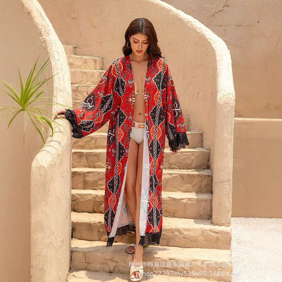 Кружевное кимоно в экзотическом стиле с узором пейсли, кардиган, богемная пляжная атласная драпированная ткань, повседневная блузка