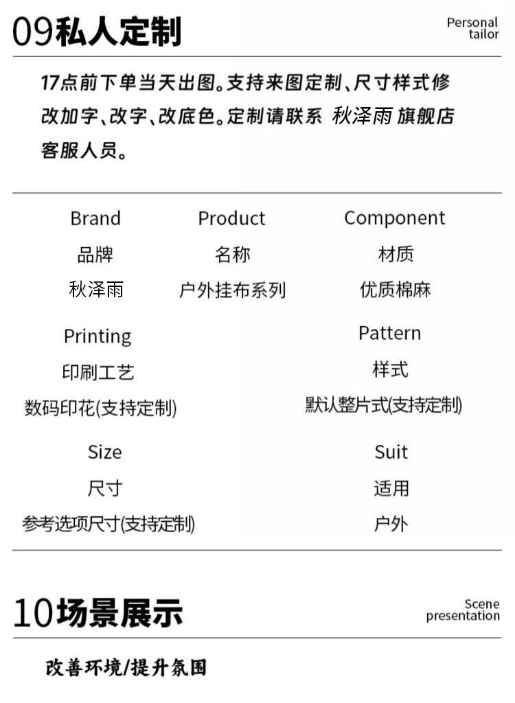 Персонализированный размер, рисунок, пожалуйста, обратитесь в службу поддержки клиентов; По умолчанию четыре угла перфорированы. Если вам нужно пробить отверстия, обратитесь в службу поддержки клиентов.; Ширина 100 см * Высота 30 см (отверстия по четырем углам + пеньковая веревка в комплекте); Ширина 120 см * Высота 35 см (отверстия по четырем углам + конопляная веревка в комплекте); Ширина 150 см * Высота 45 см (отверстия по четырем углам + конопляная веревка в комплекте); Ширина 200 см * Высота 45 см (отверстия по четырем углам + конопляная веревка в комплекте); Ширина 300 см * Высота 45 см (отверстия по четырем углам + конопляная веревка в комплекте)