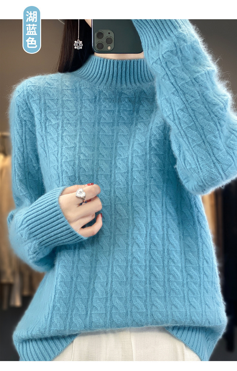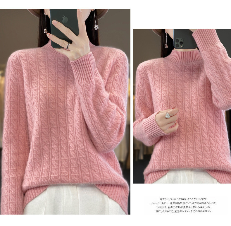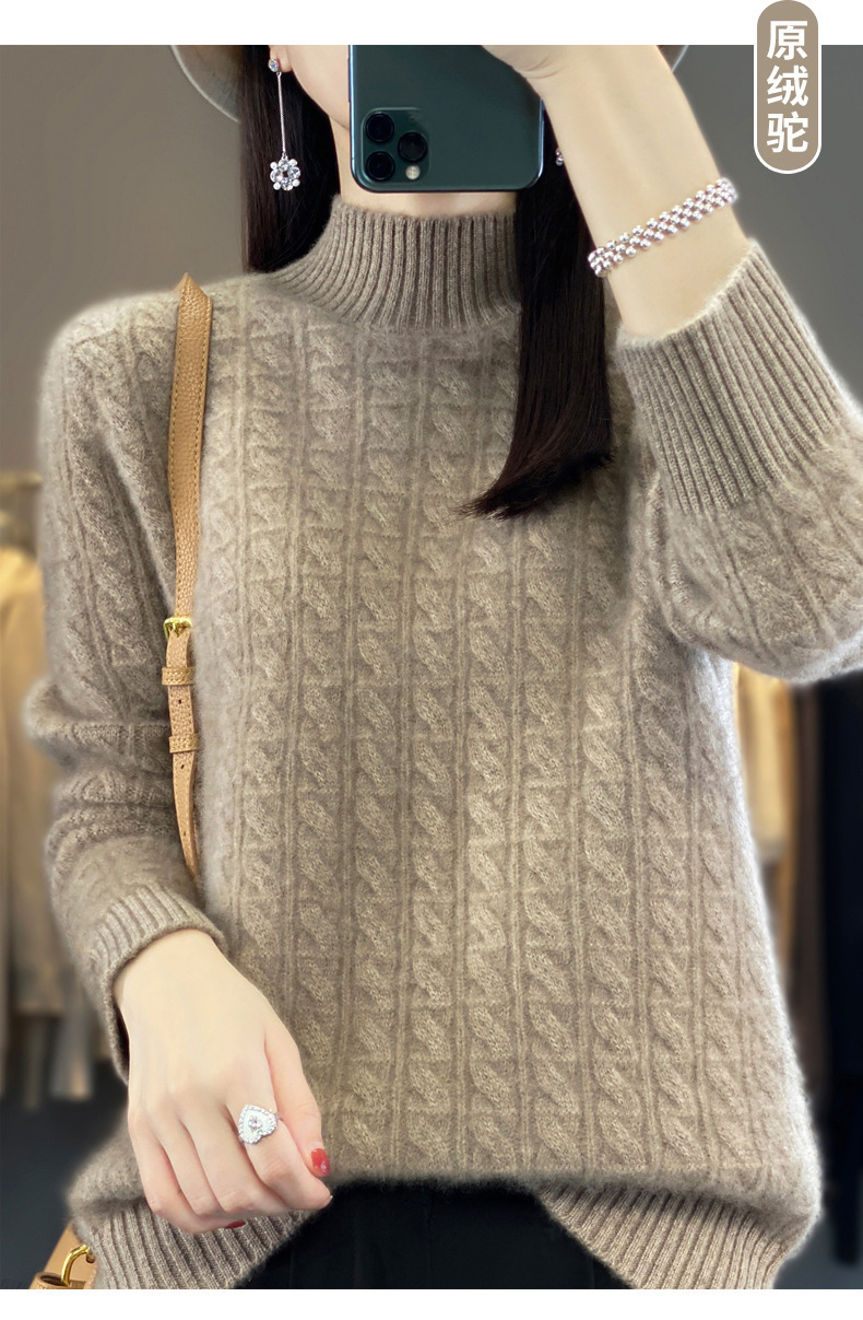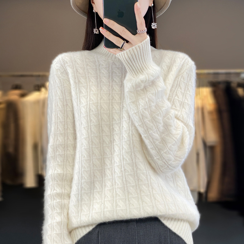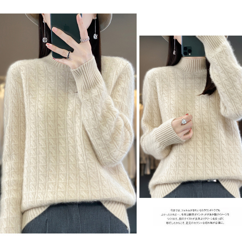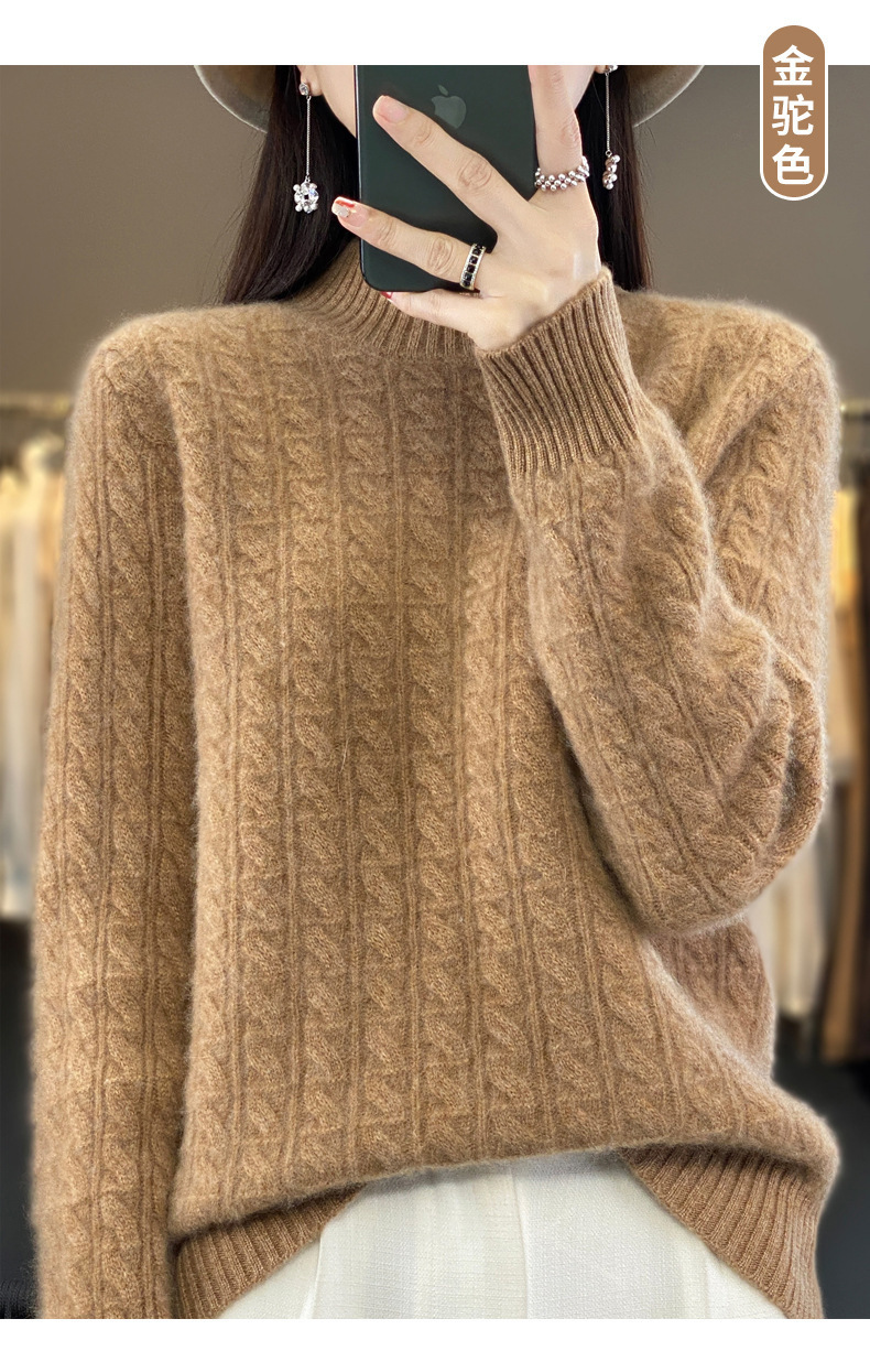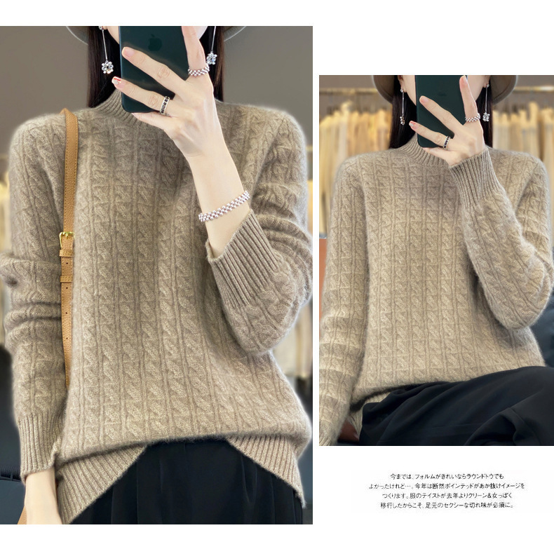 Вязаный свитер с половиной водолазкой, женский утолщенный витой пуловер с длинными рукавами, осенне-зимний вязаный свитер, свободный и универсальный топ в корейском стиле