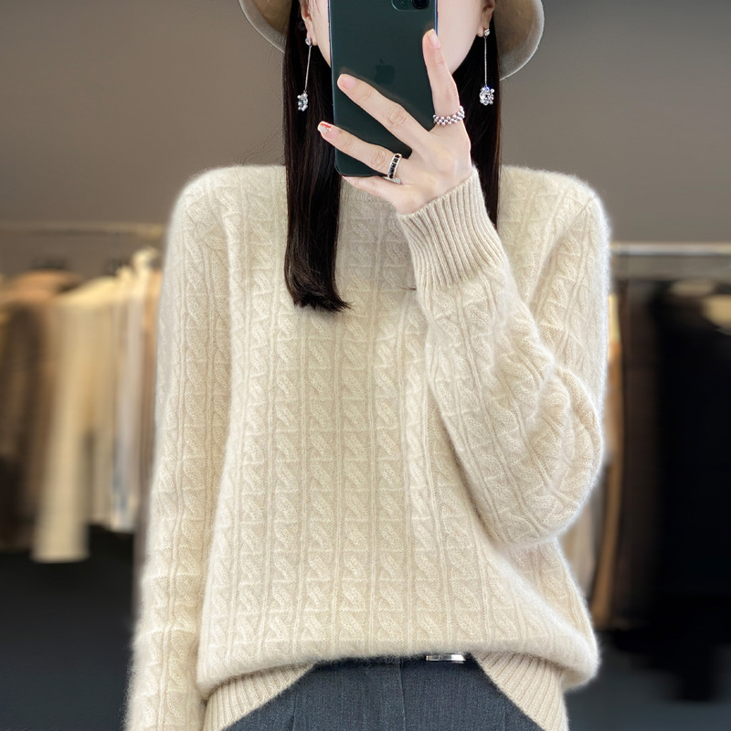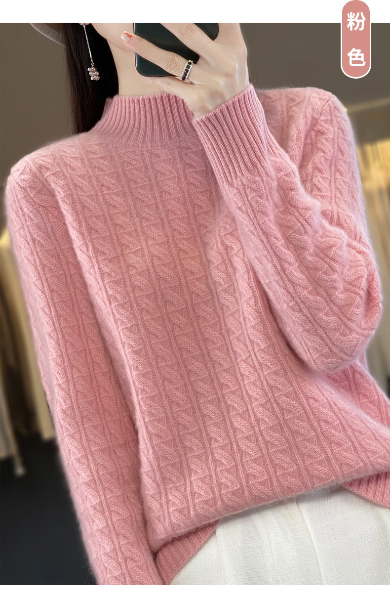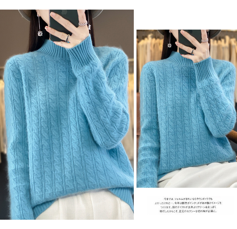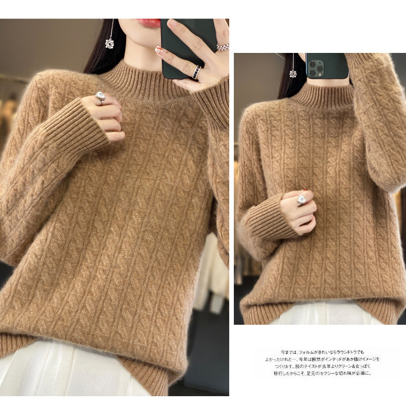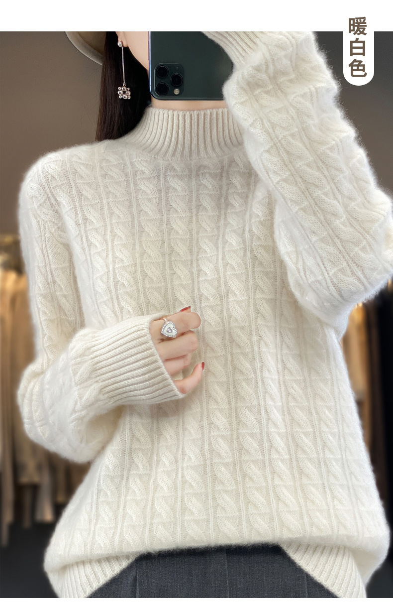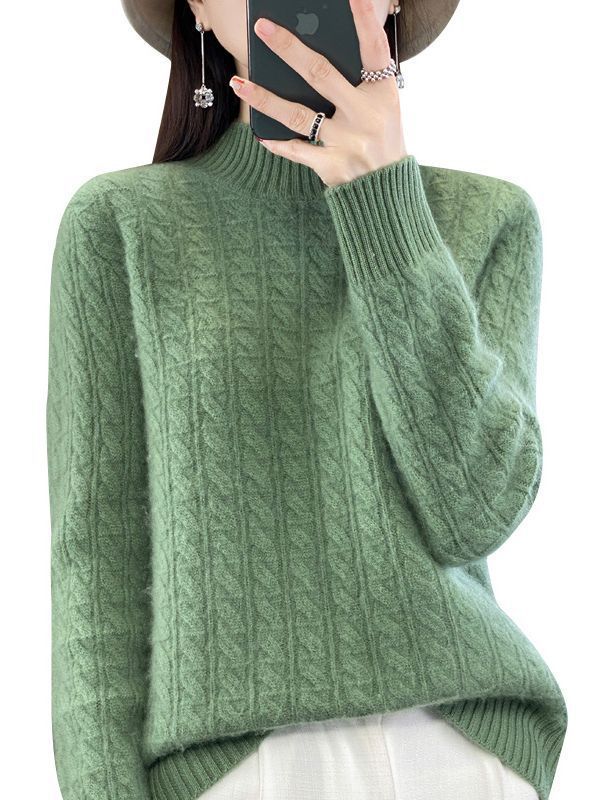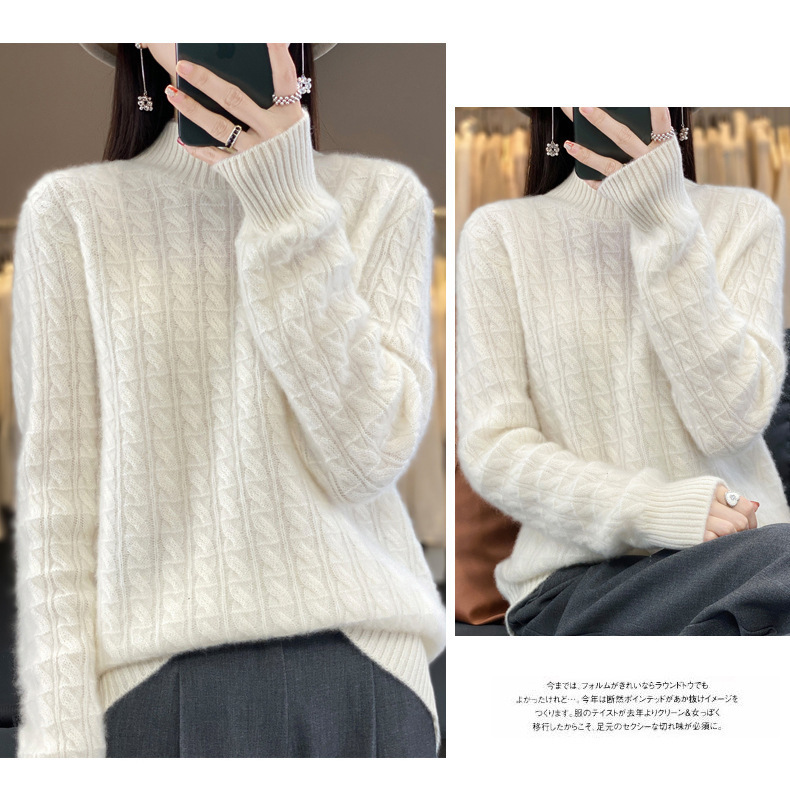 Вязаный свитер с половиной водолазкой, женский утолщенный витой пуловер с длинными рукавами, осенне-зимний вязаный свитер, свободный и универсальный топ в корейском стиле
