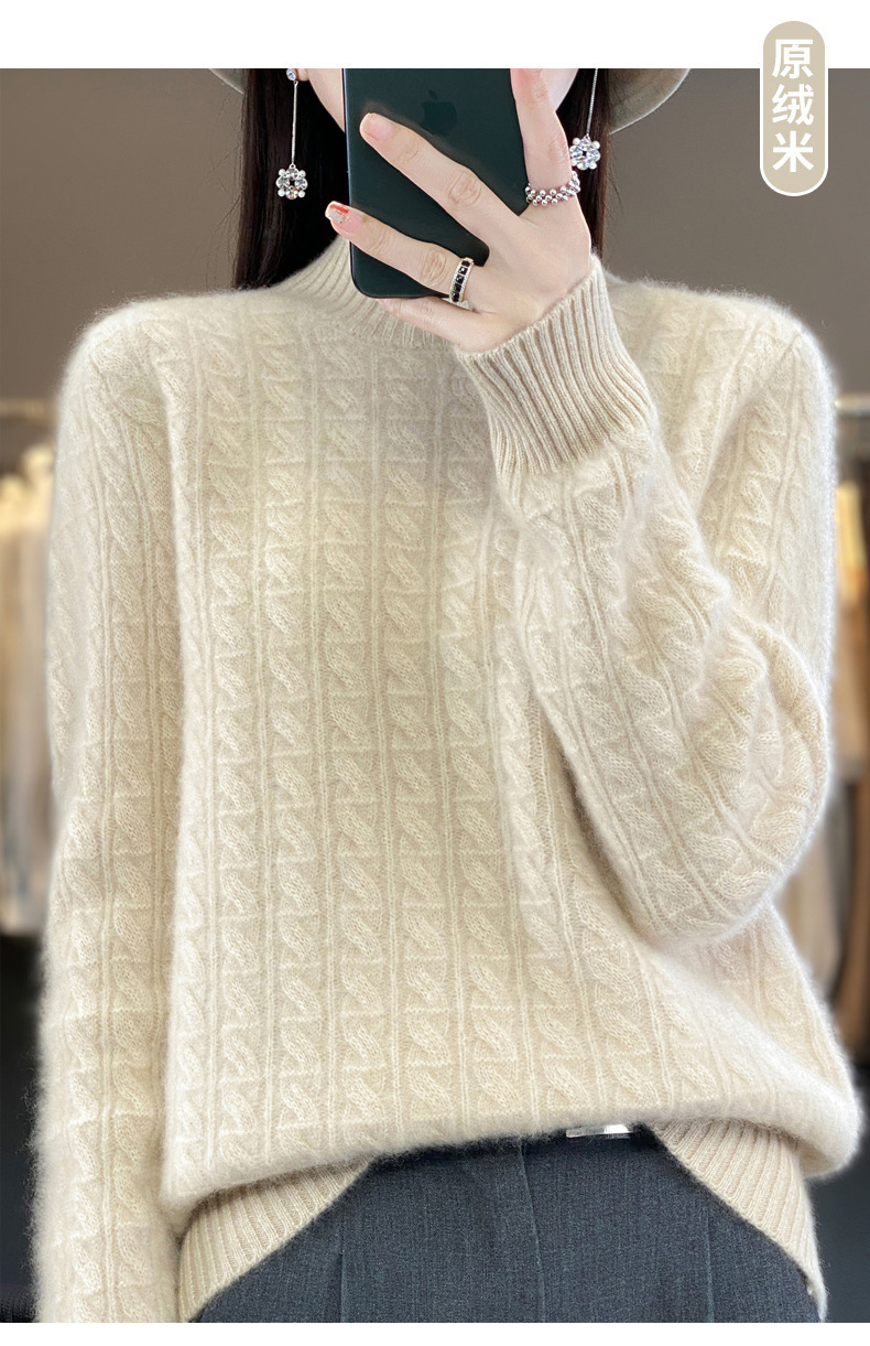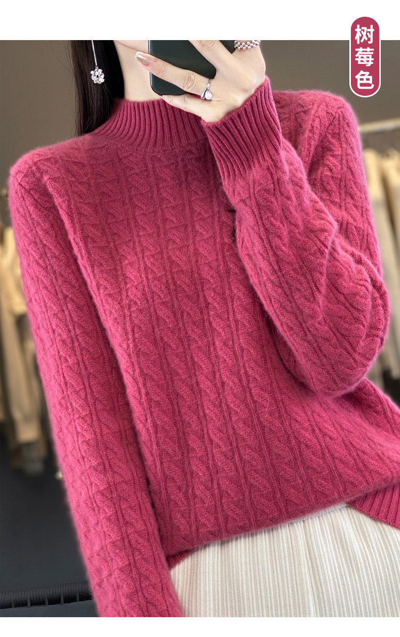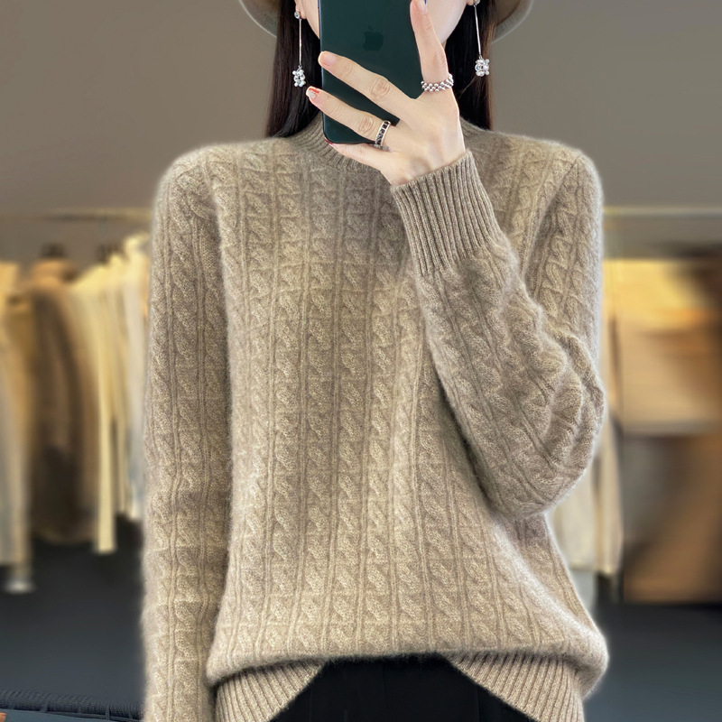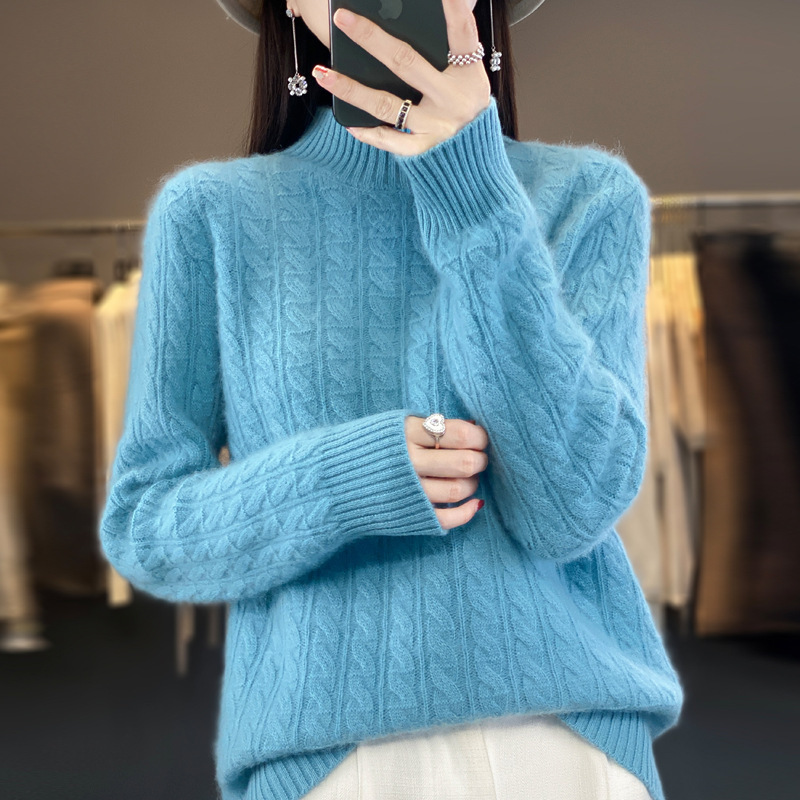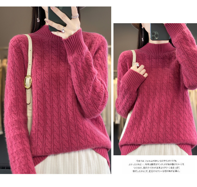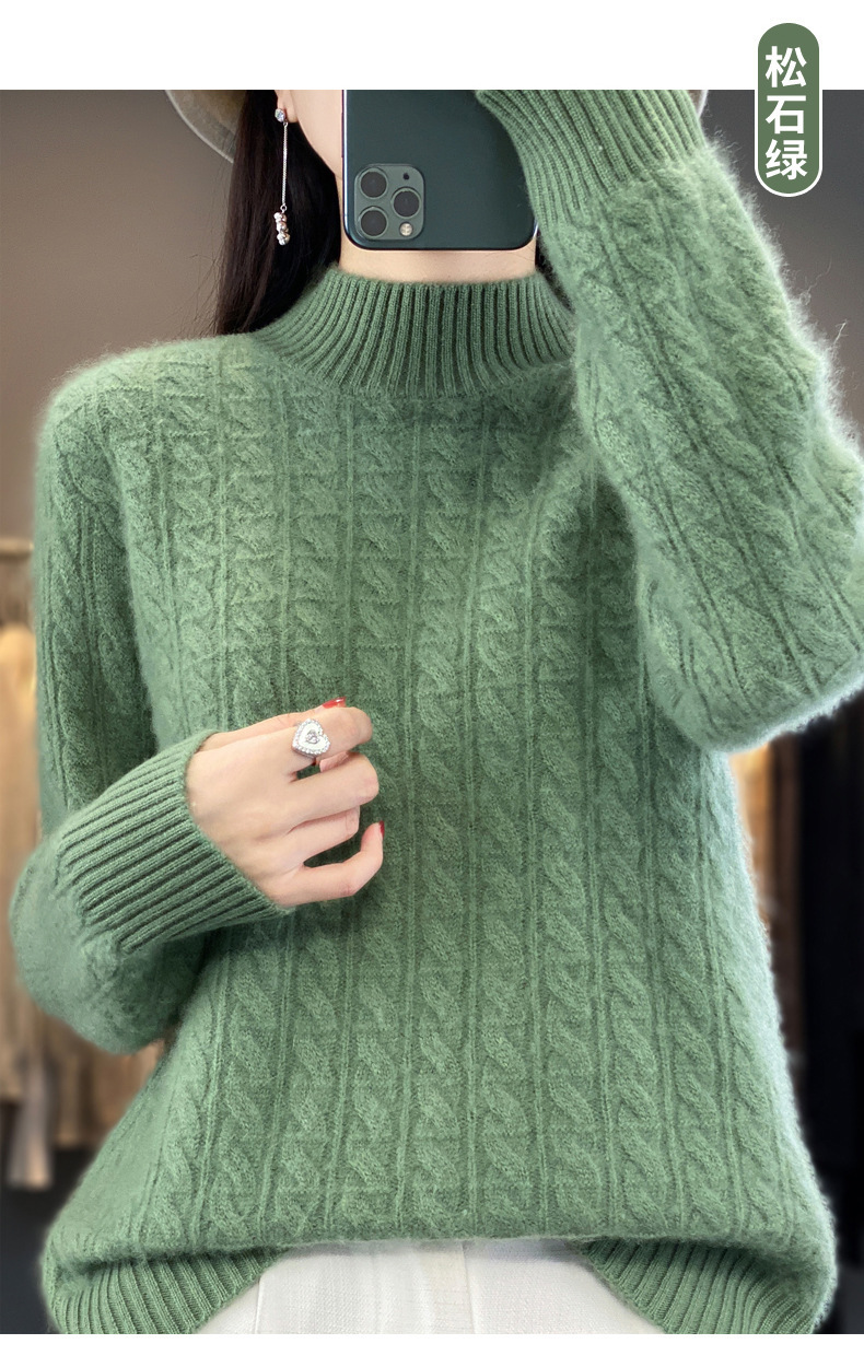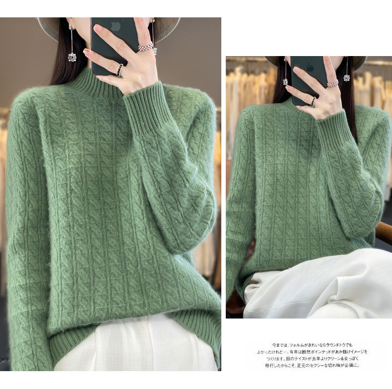 Вязаный свитер с половиной водолазкой, женский утолщенный витой пуловер с длинными рукавами, осенне-зимний вязаный свитер, свободный и универсальный топ в корейском стиле