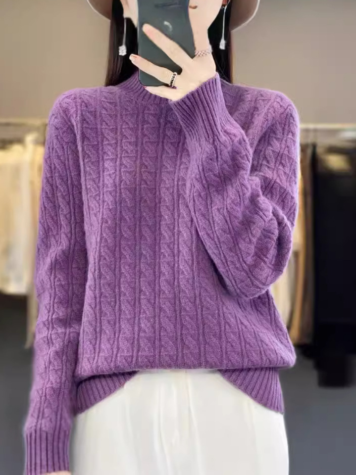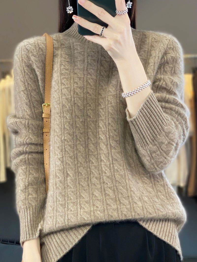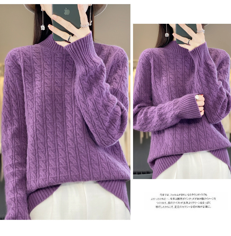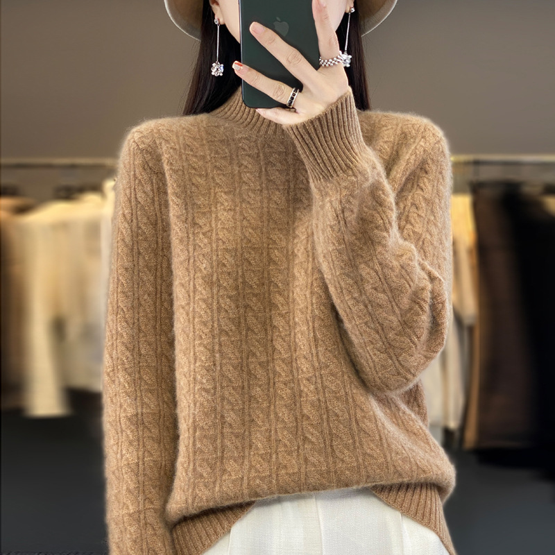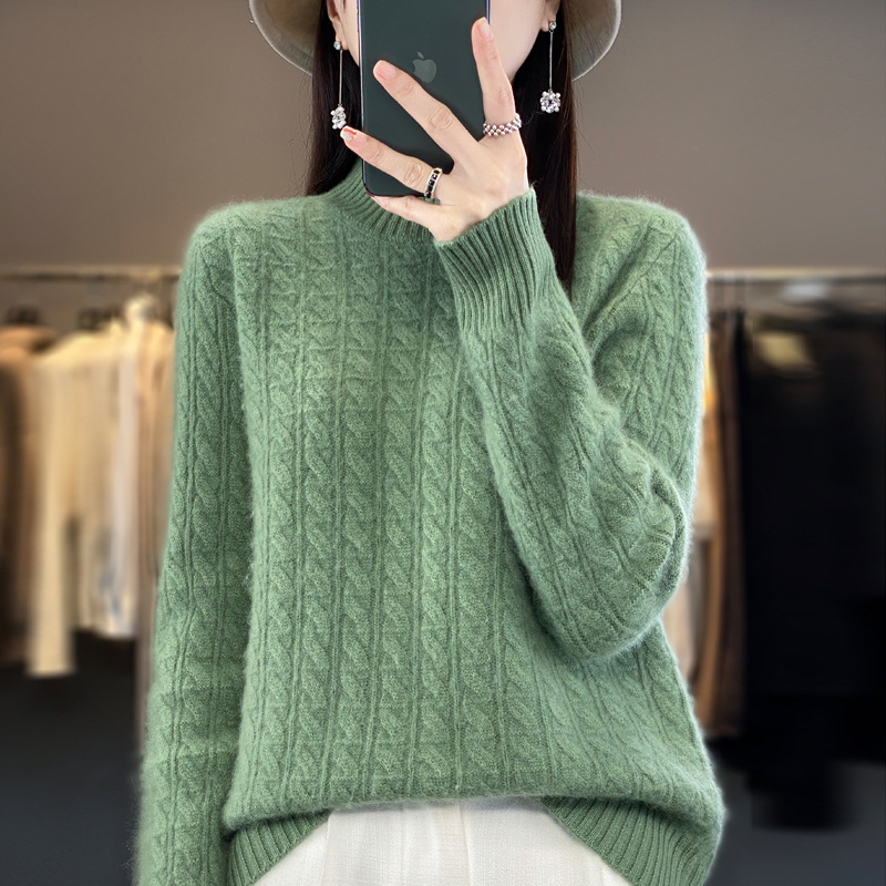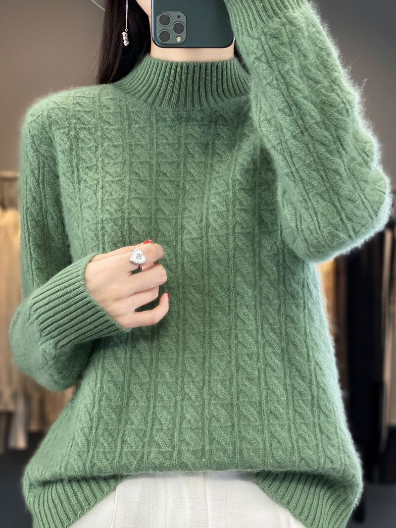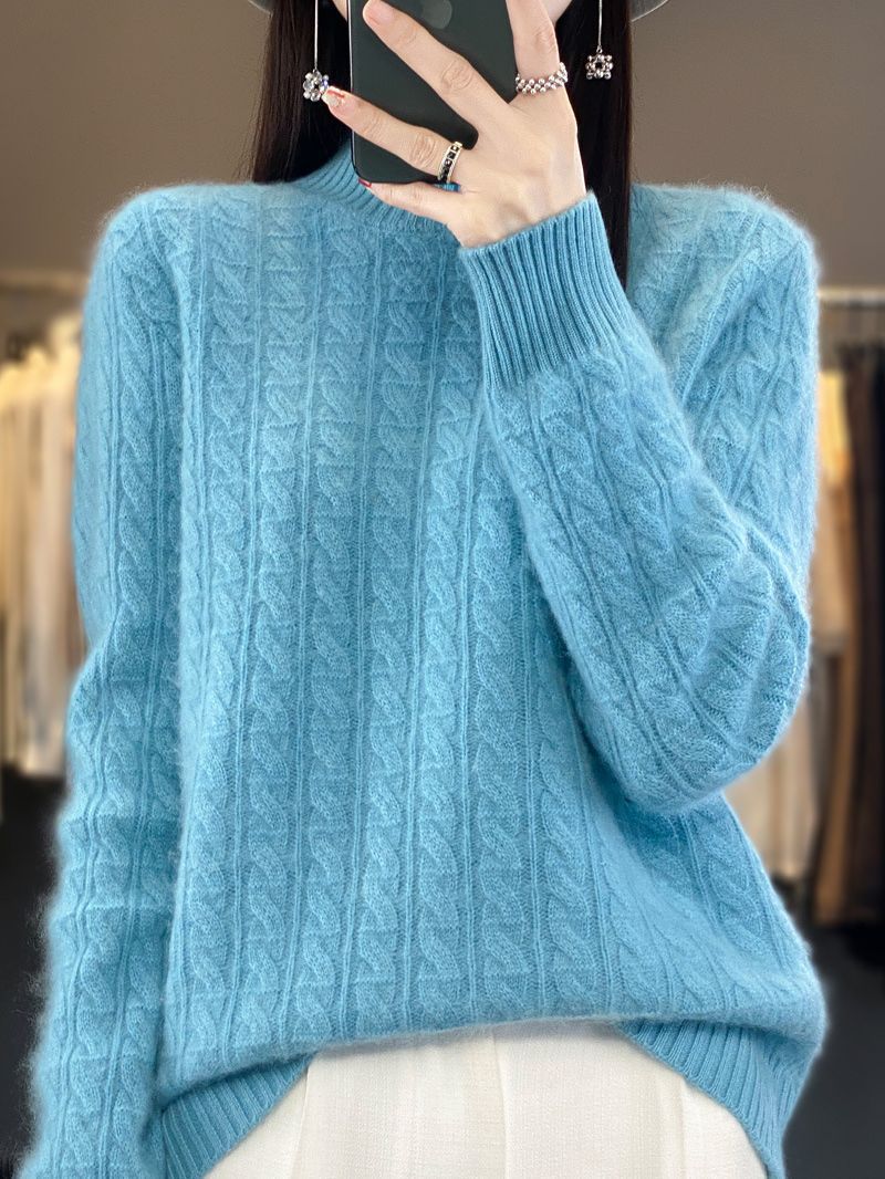 Вязаный свитер с половиной водолазкой, женский утолщенный витой пуловер с длинными рукавами, осенне-зимний вязаный свитер, свободный и универсальный топ в корейском стиле