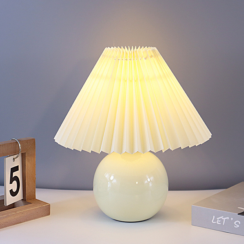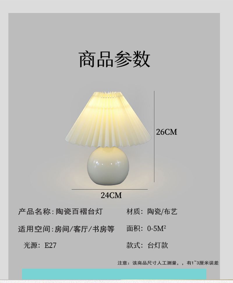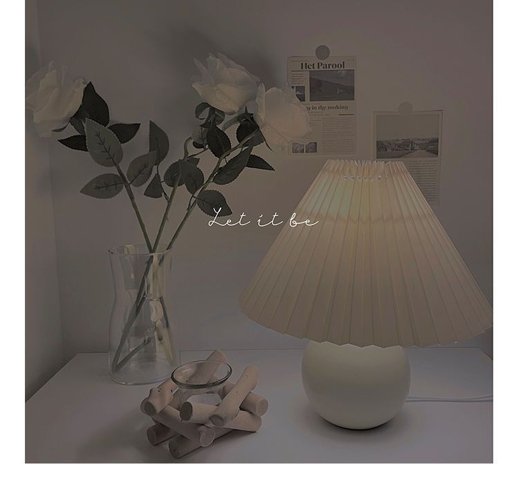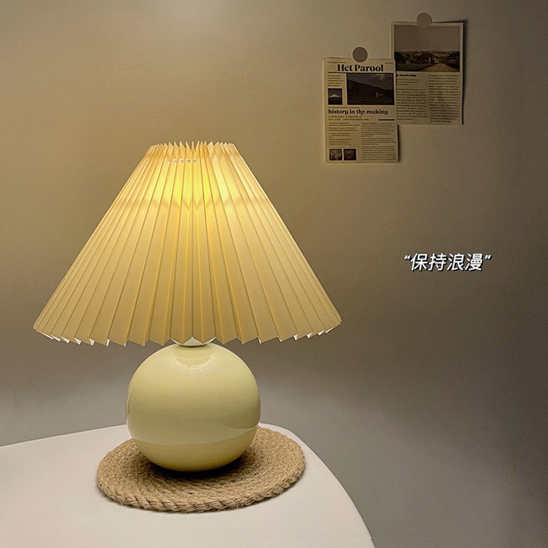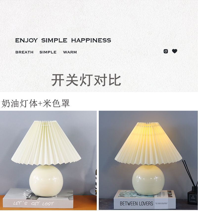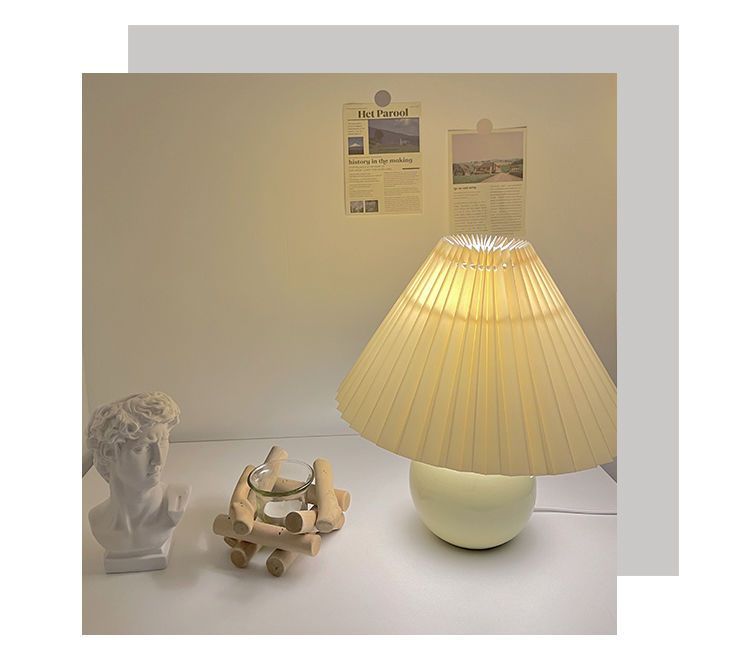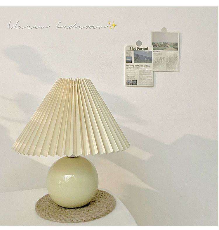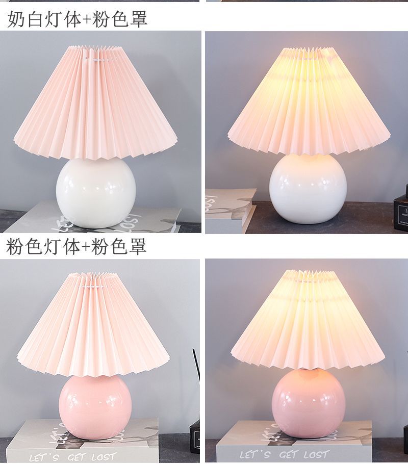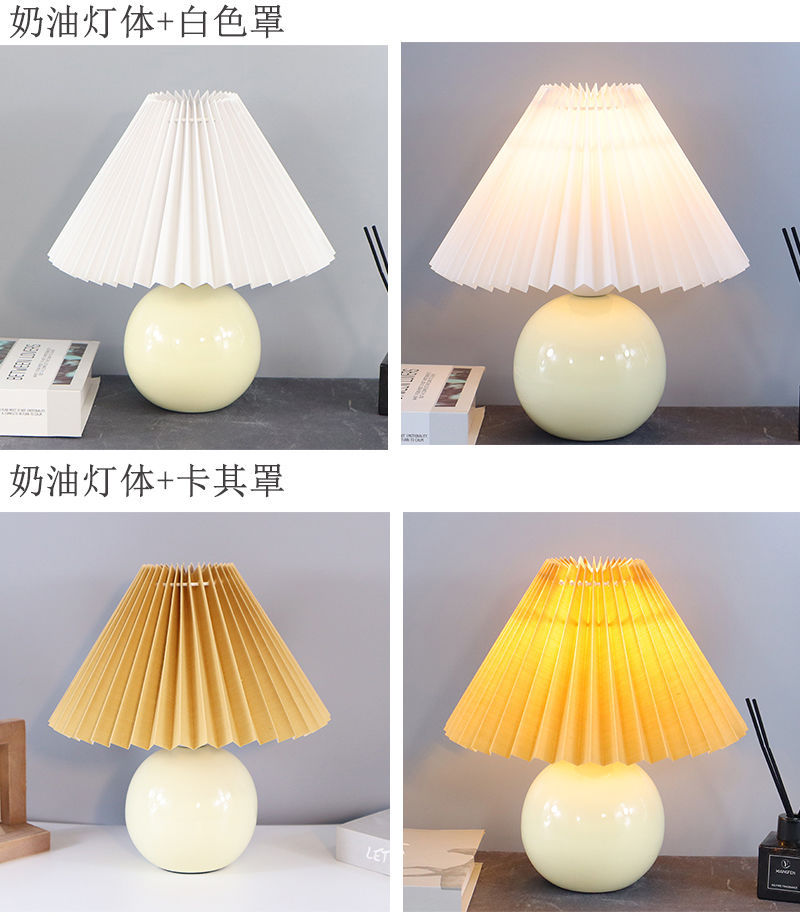 Керамическая лампа для интернет-знаменитостей для девочек, скандинавская плиссированная лампа для спальни, теплая прикроватная лампа, настольная лампа, скандинавский ночник для кормления.