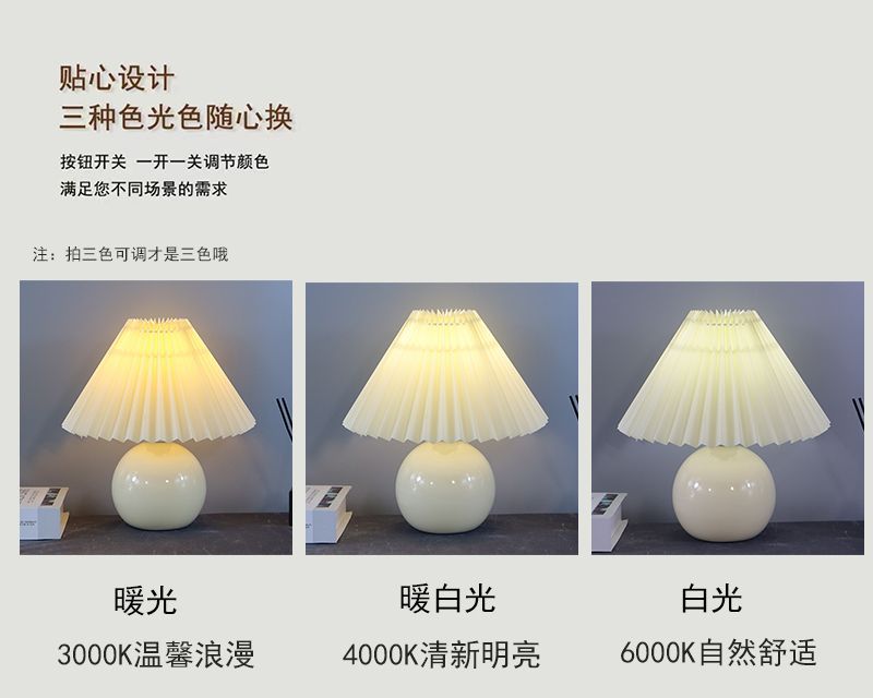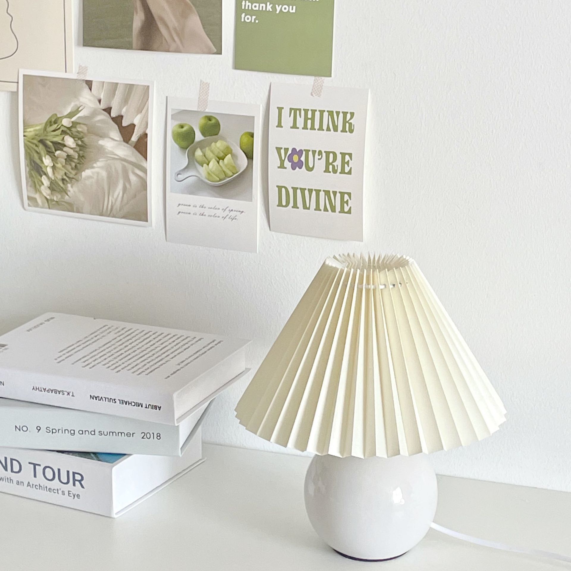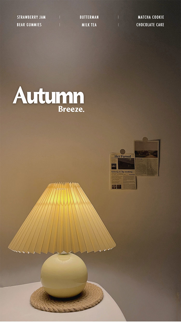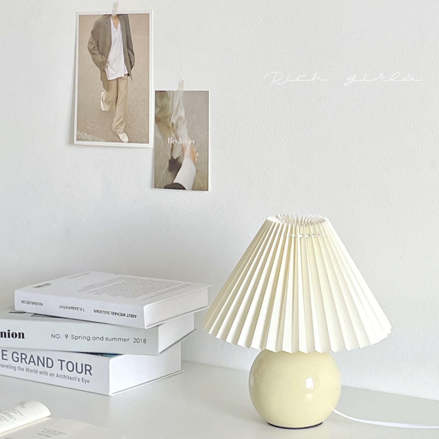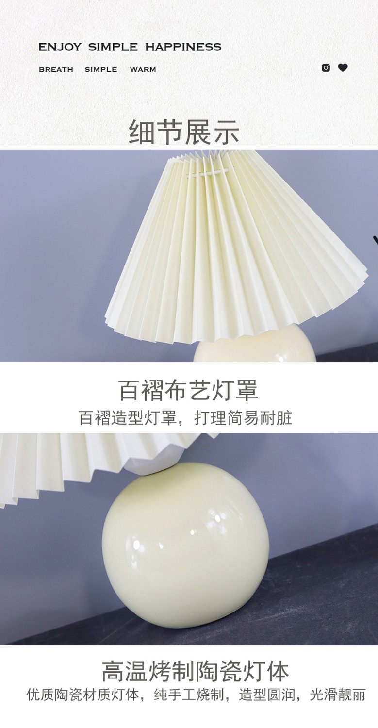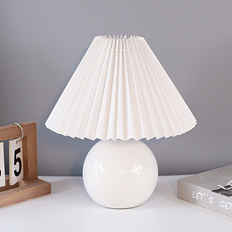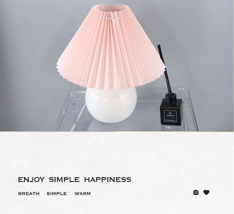 Керамическая лампа для интернет-знаменитостей для девочек, скандинавская плиссированная лампа для спальни, теплая прикроватная лампа, настольная лампа, скандинавский ночник для кормления.
