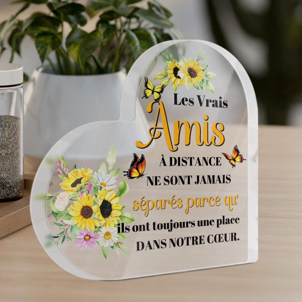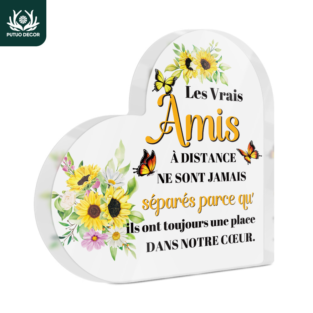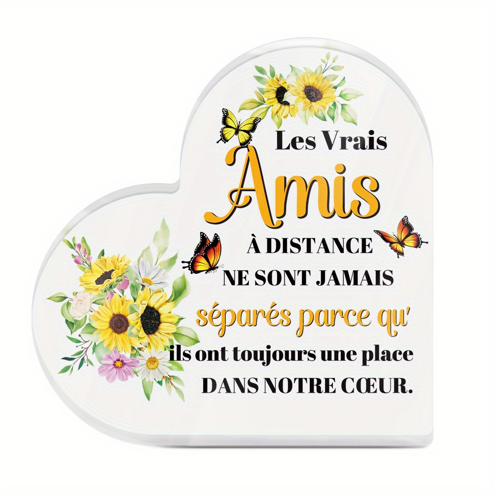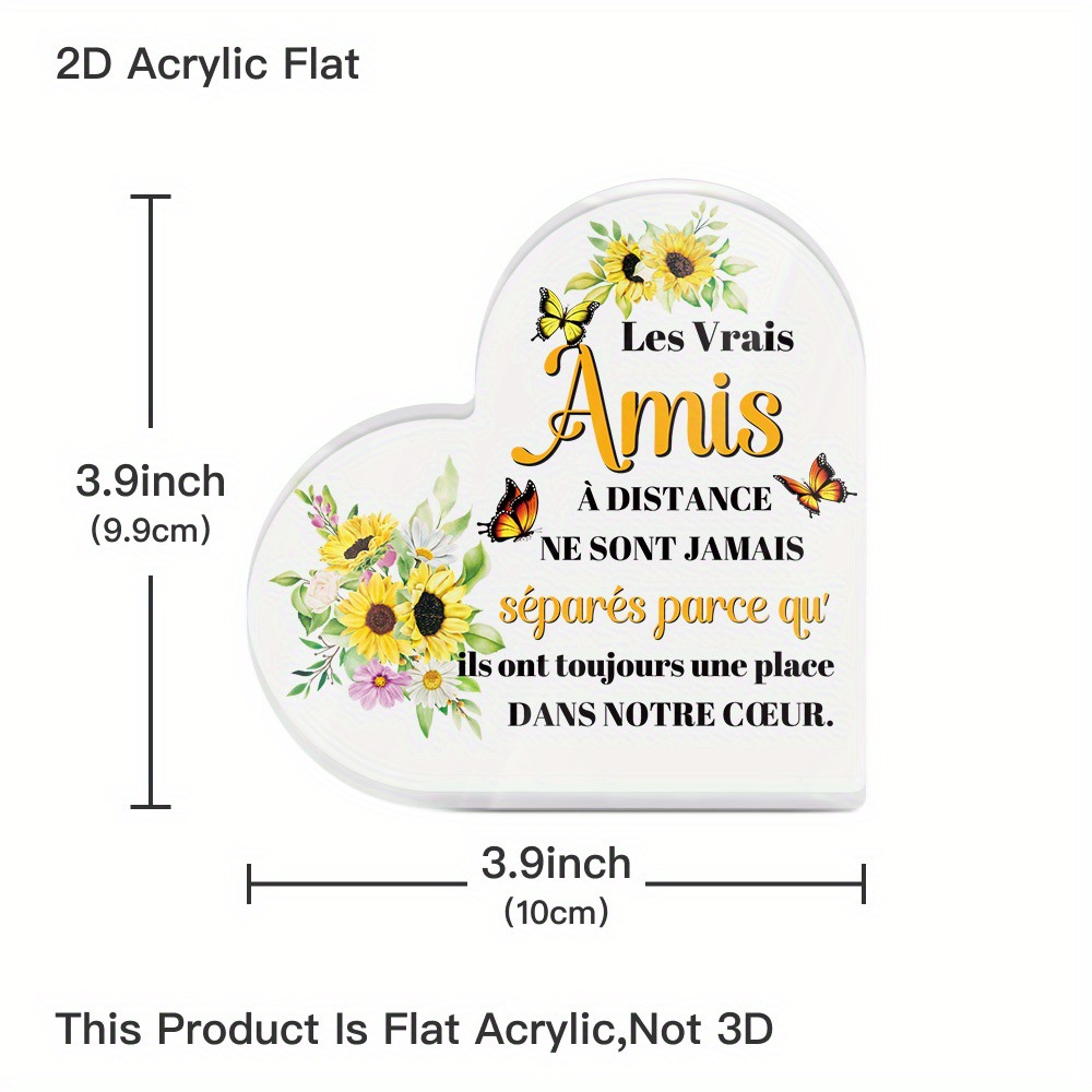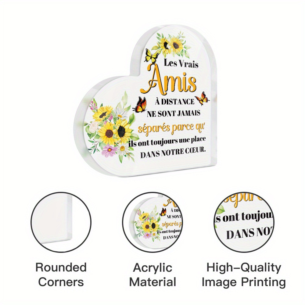2D плоская французская акриловая табличка для украшения стола в форме сердца - «Настоящие друзья в разлуке» двуязычная дружба на английском/французском языке