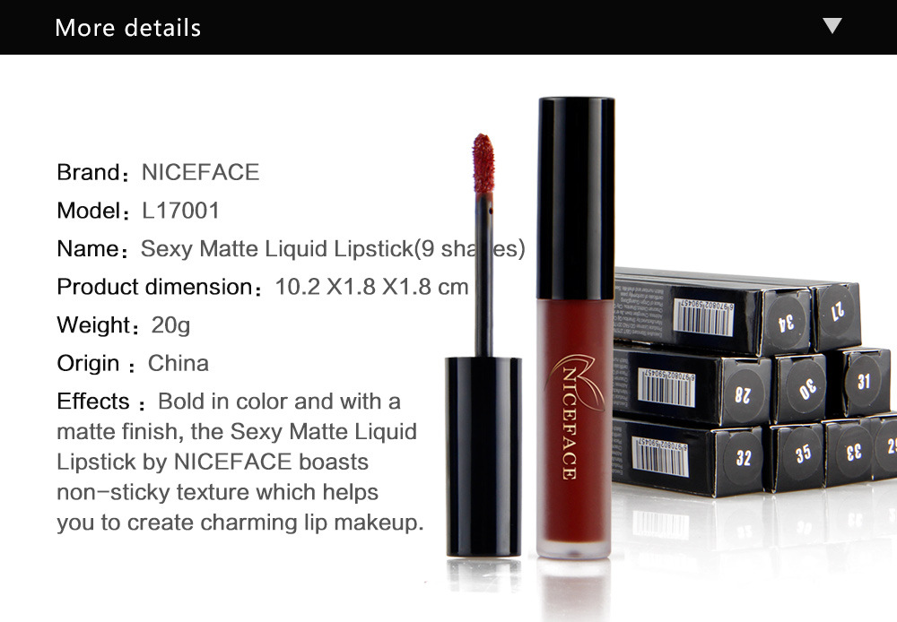 NICEFACE трансграничный блеск для губ необычного цвета на Хэллоуин, водостойкая антипригарная чашка, невыцветающая матовая долговечная жидкая помада