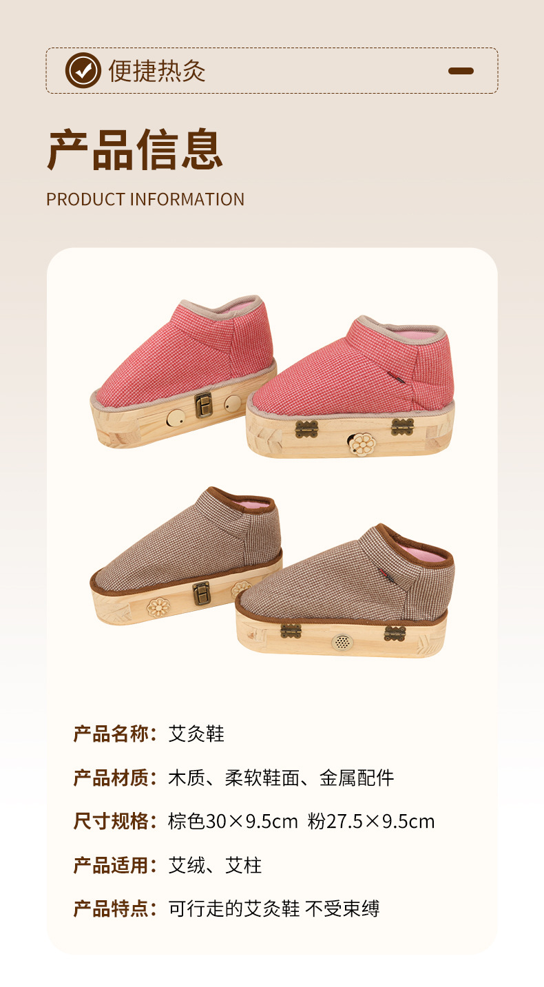 Обувь для моксибустии стоп, оборудование для моксибустии из массива дерева с открытым пламенем, портативное устройство для комплексного горячего компресса и моксибустии, носимые ботинки для моксибустии.