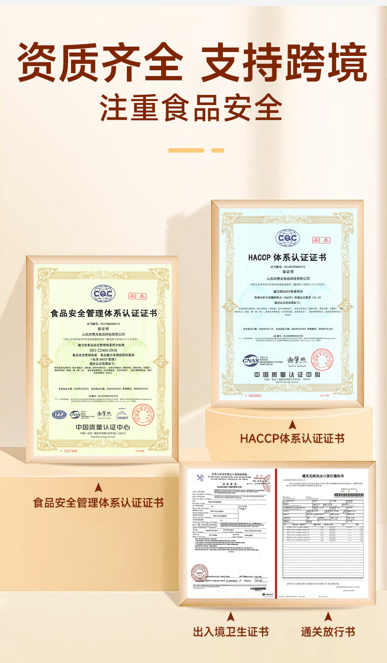 3. 【跨境资质全满贯】HACCP+食品安全管理体系认证,出入境卫生+通关放行书齐全,预制菜跨境出口轻松布局全球!