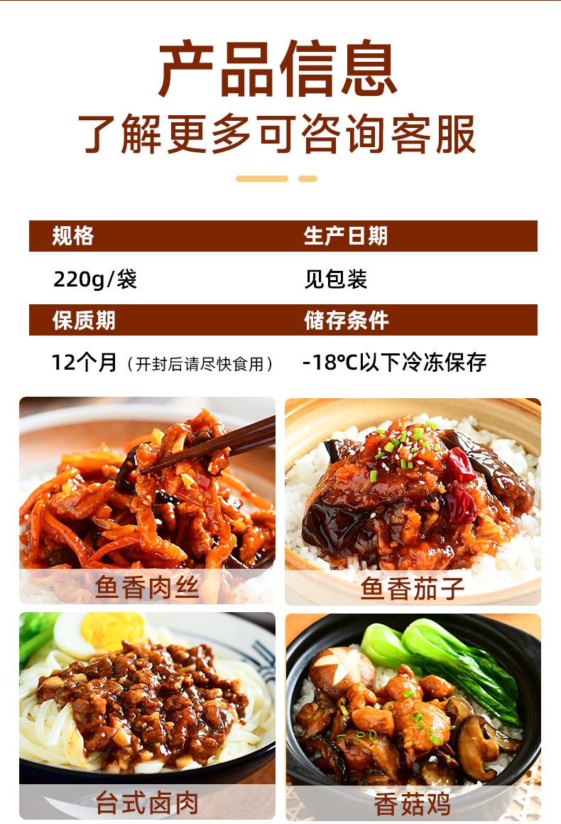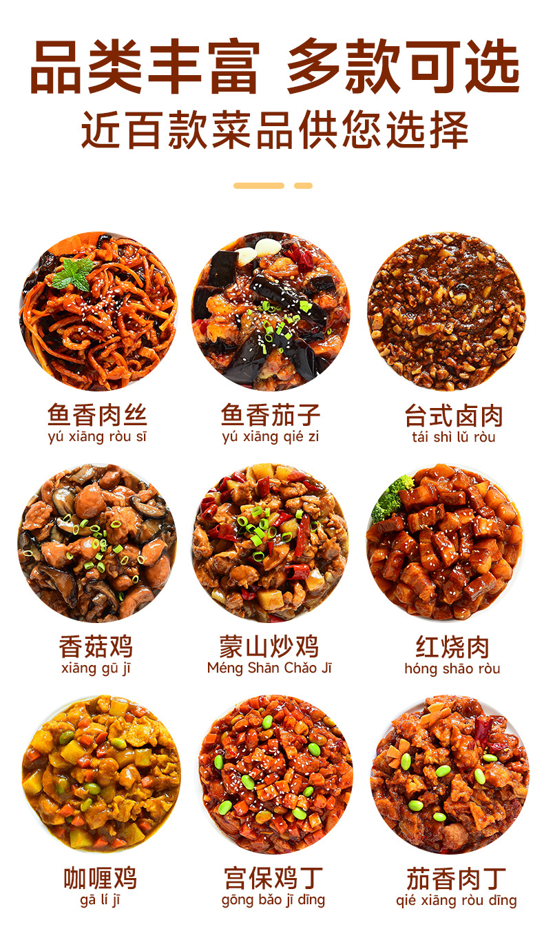 8. 【OEM专属配方定制】从口味到包装,鱼香茄子、黑椒牛肉等预制菜均可按需订制,打造您的独家产品!