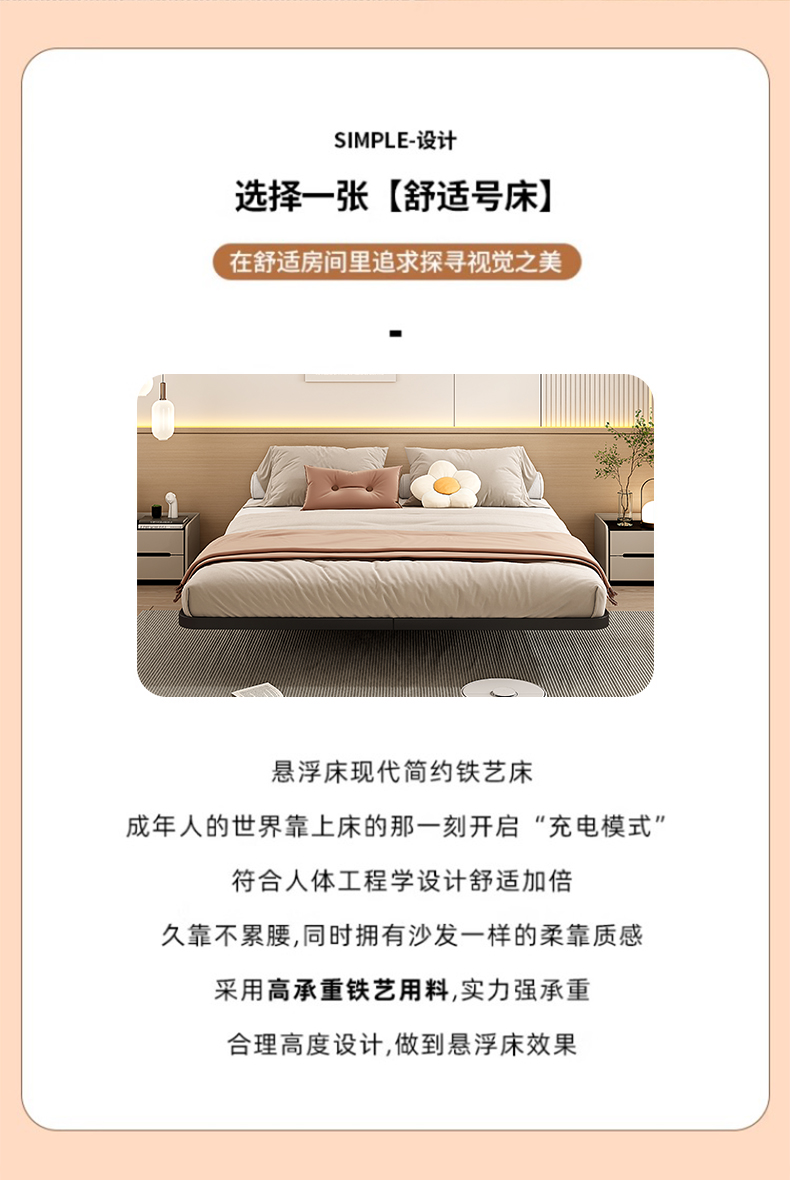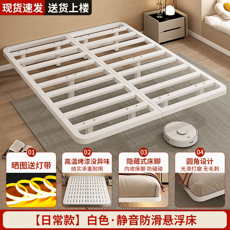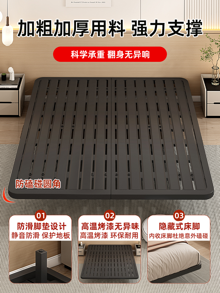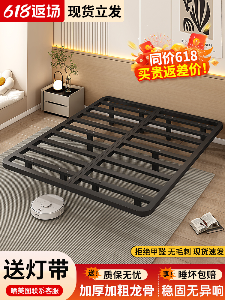 Кровать из кованого железа без изголовья, подвесная кровать, двуспальная кровать, утолщенный стальной каркас, ряд каркасов, железный каркас для сдаваемой комнаты, каркас односпальной кровати
