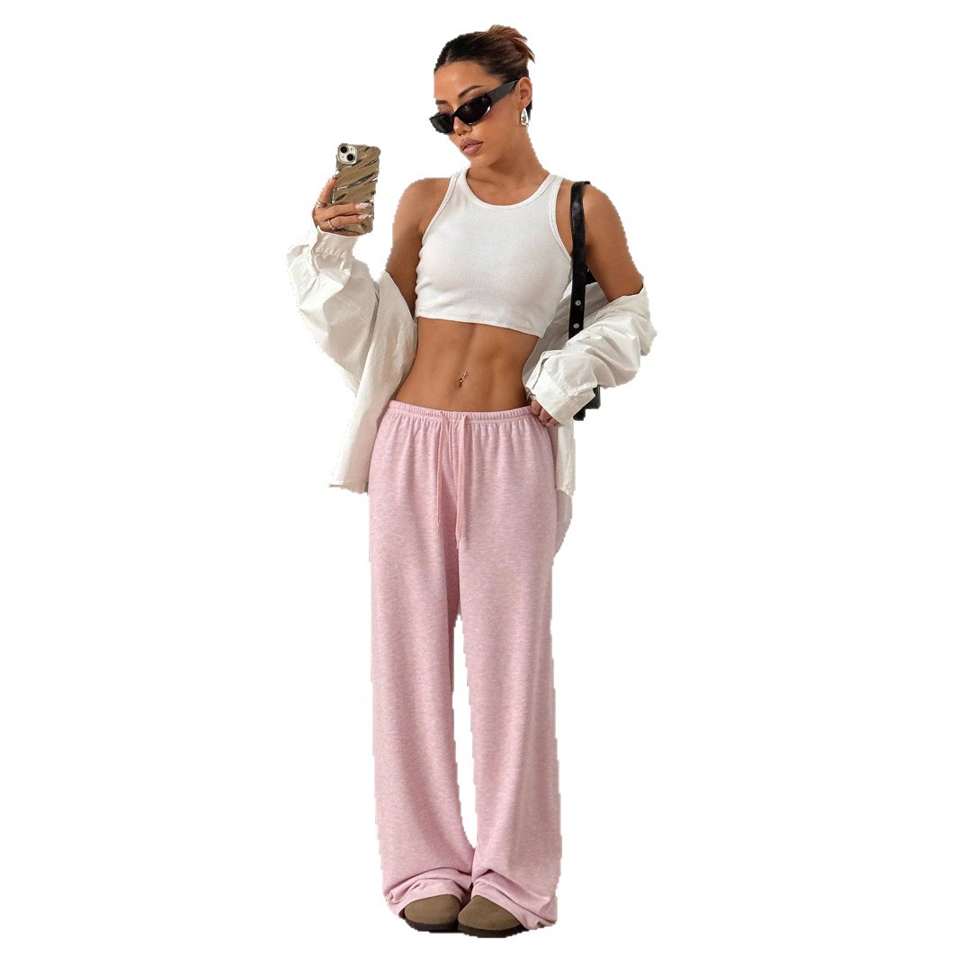 Женские широкие брюки-палаццо из двухцветной ткани с эластичным шнурком, новинка 2025 года, европейский и американский стиль