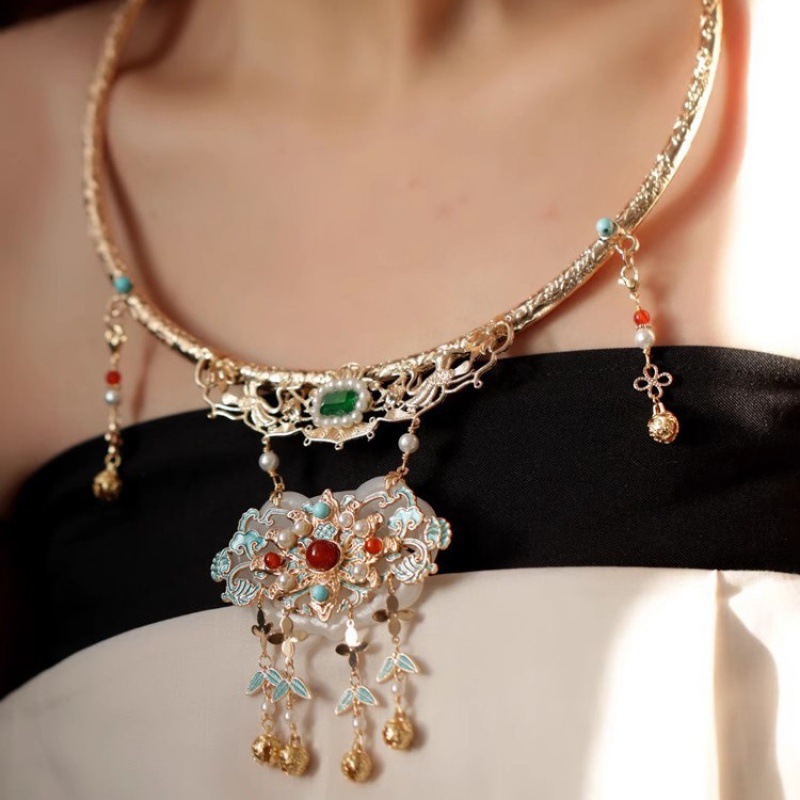 Замок мира в стиле поздней династии Мин, удлиненная задняя часть в стиле династии Мин, аксессуары для богатства в стиле династии Мин, древний костюм, китайское колье в стиле поздней династии Мин.