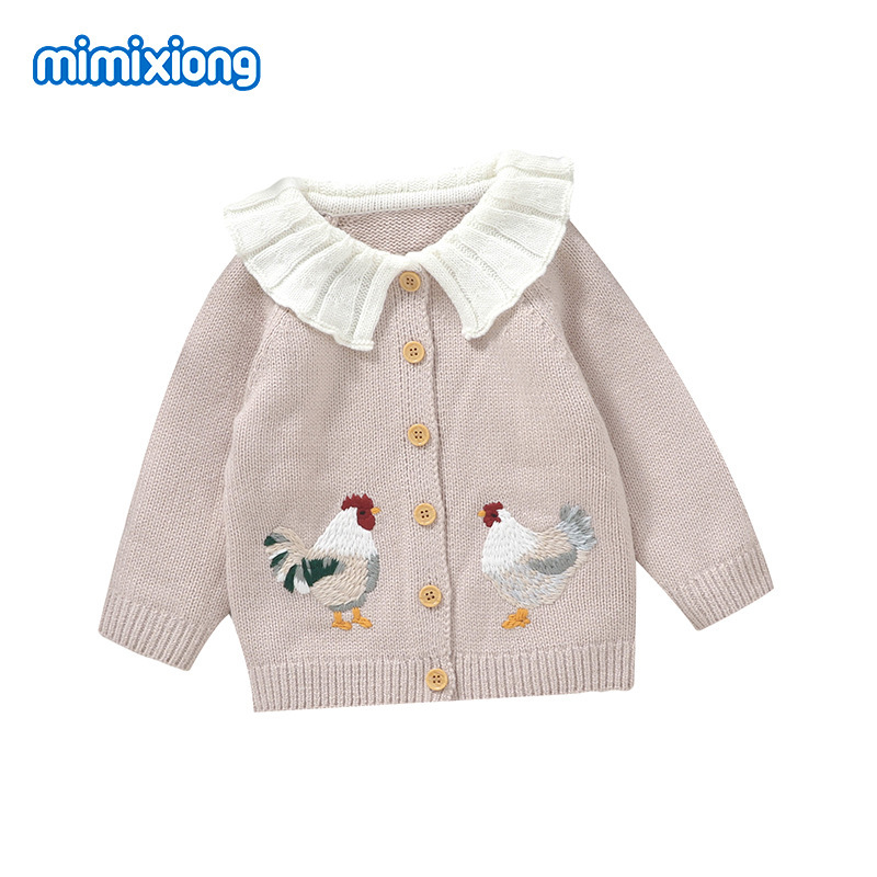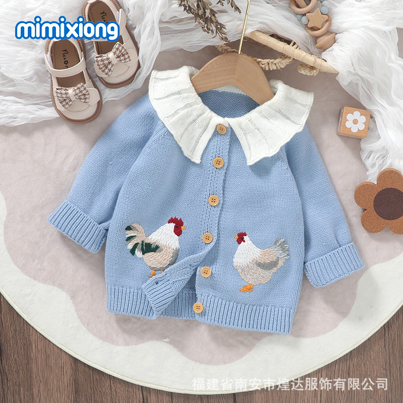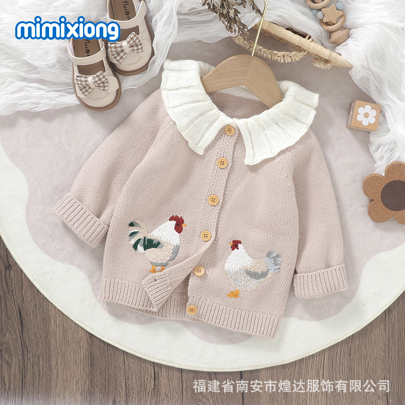 INS хит продаж, осенне-зимний новый стиль, милый вязаный жакет с вышивкой цыпленка для малышей, универсальный топ для маленьких девочек