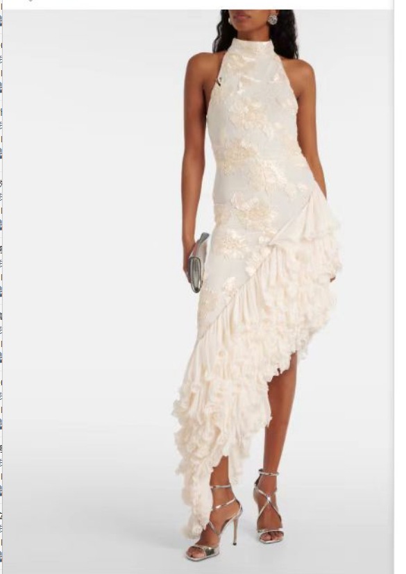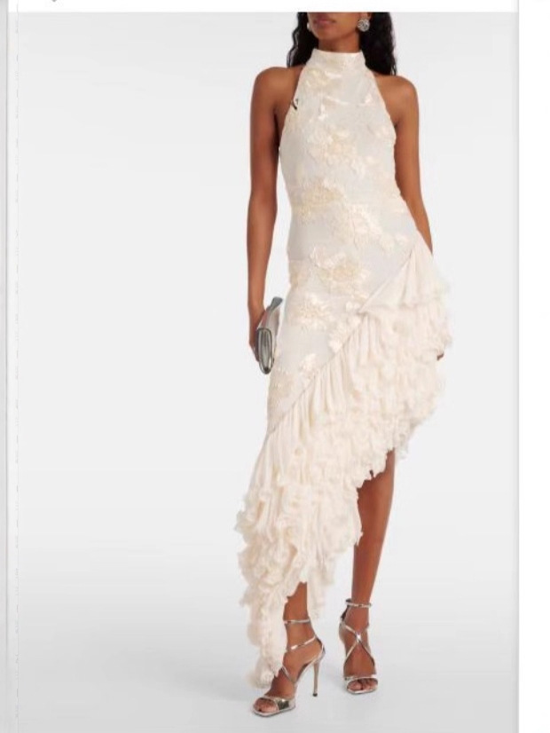 Европейское и американское элегантное, простое и высококачественное платье 2025 года весна, новое, с круглым вырезом, без рукавов, с открытой талией, асимметричное, с объемным цветочным принтом.