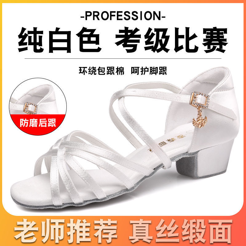 Детские белые белые туфли для латинских танцев, профессиональные соревновательные туфли на мягкой подошве для начинающих, туфли для латинских танцев, танцевальные туфли для девочек