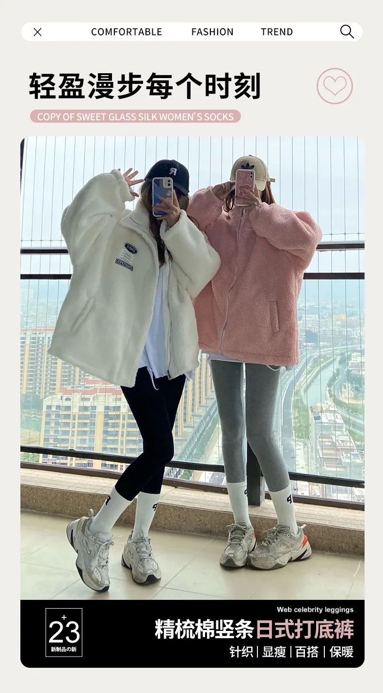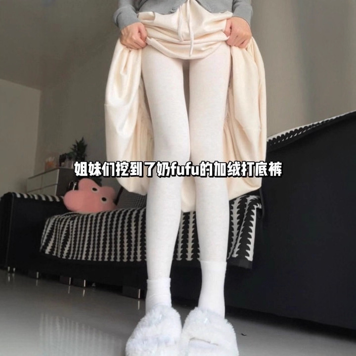 Осенние и зимние женские утепленные хлопковые леггинсы в японском стиле с флисовой подкладкой, теплые, в вертикальную полоску, белого цвета, облегающие, для красивых ног.