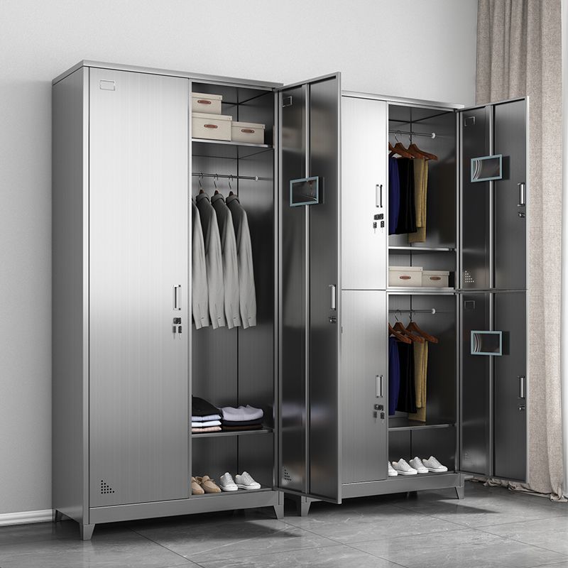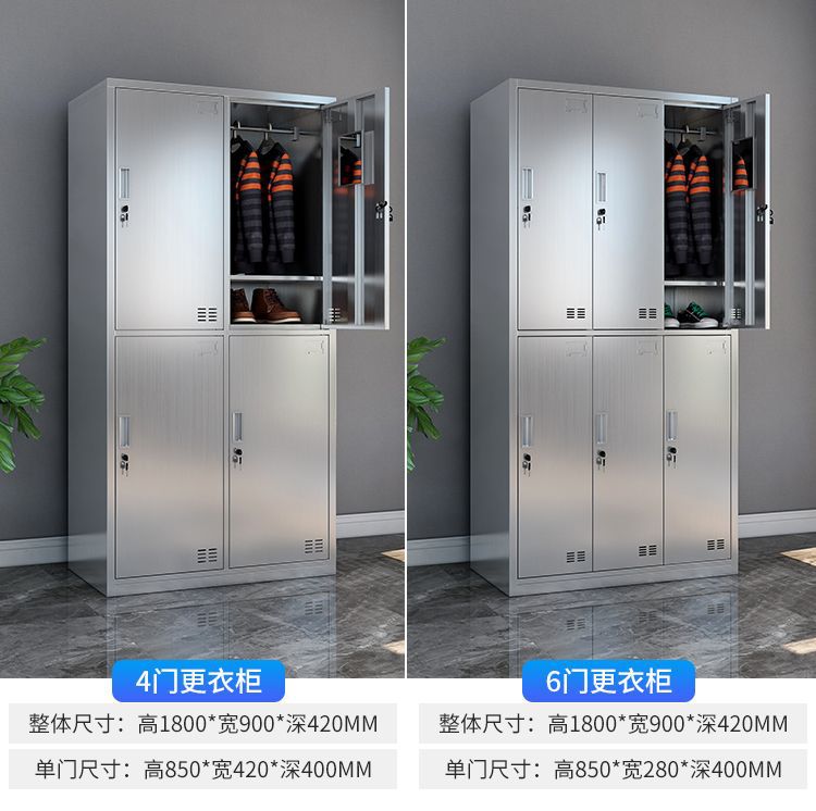 Утолщенный шкаф для хранения из нержавеющей стали 304, шкаф для хранения персонала в ванной комнате, многодверный многослойный шкаф для обуви с несколькими сетками