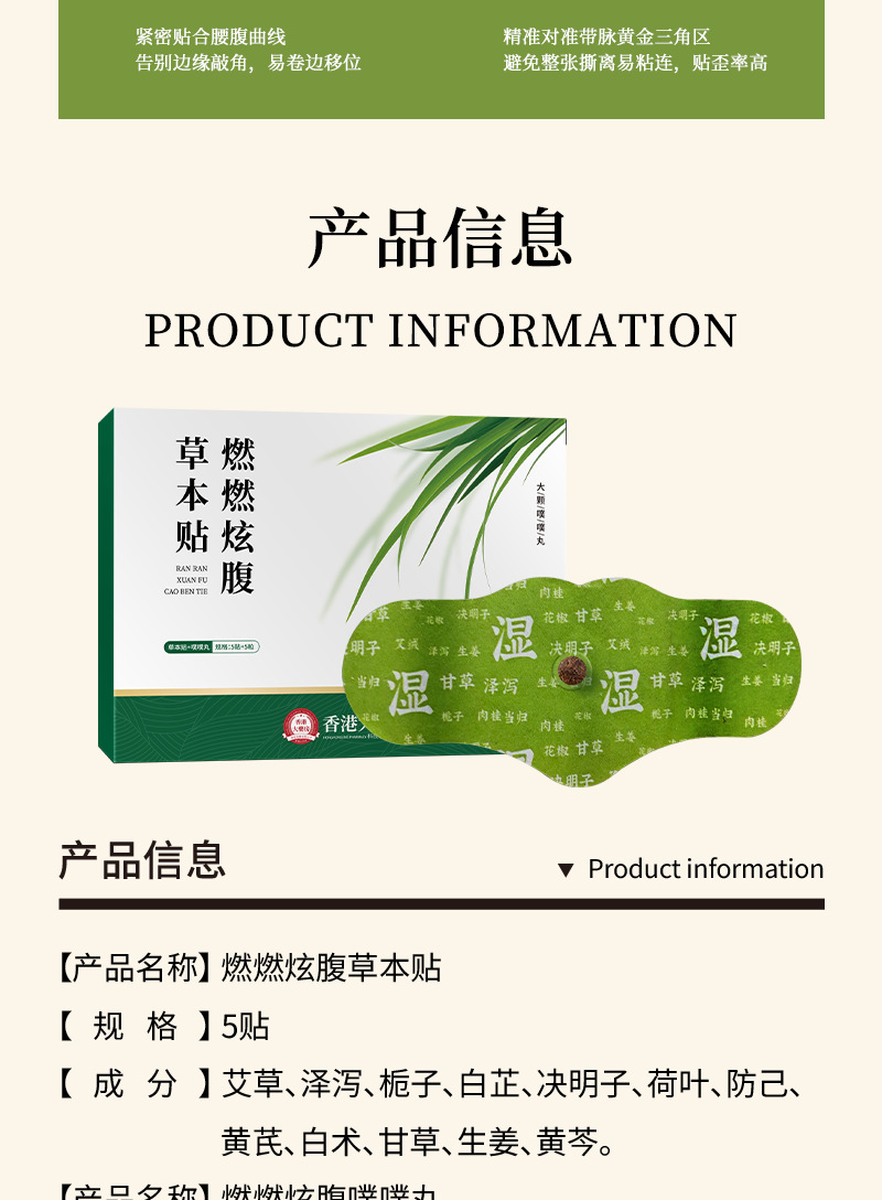 艾草燃燃贴,大肚贴,艾草肚脐贴,艾草贴,艾灸贴,去湿艾草肚脐丸贴,轻盈贴,腹部贴