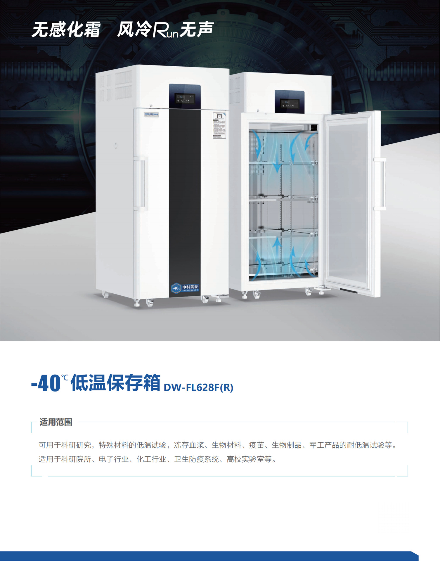 适用范围:可用于科研研究,特殊材料的低温试验、冻存血浆、生物材料、疫苗、生物制品、军工产品的耐低温实验等。适用于科研院所、电子行业、化工行业、卫生防疫系统、高校实验室等。