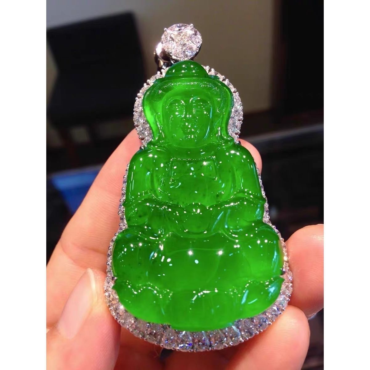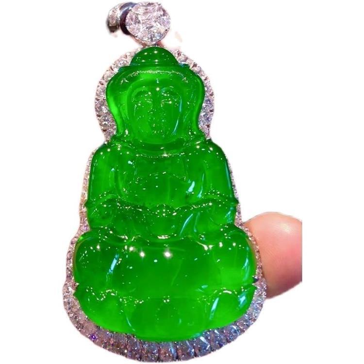 Стерлинговое серебро 999 пробы, нефритовый императорский жадеит Гуаньинь, полностью зеленый кулон Гуаньинь, кулон Бодхисаттвы