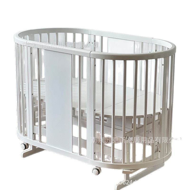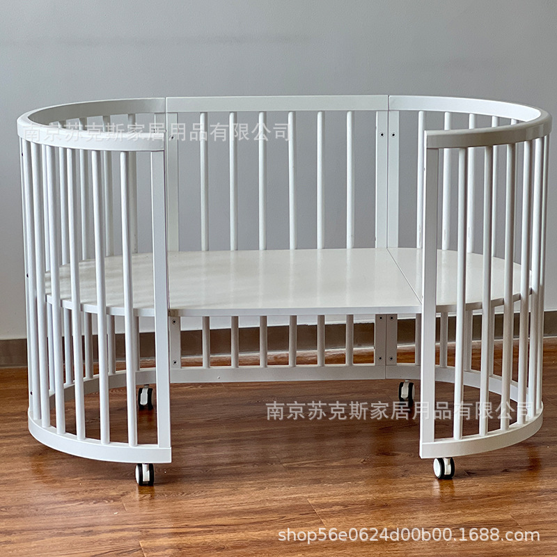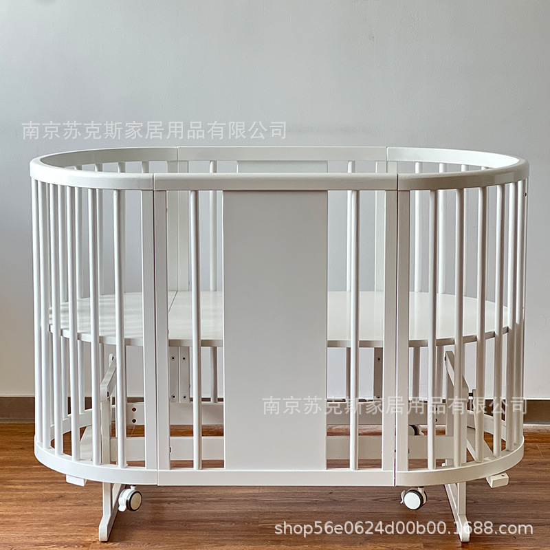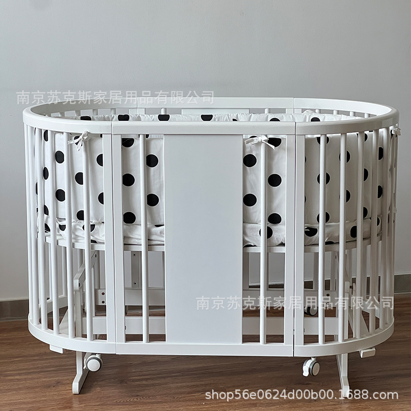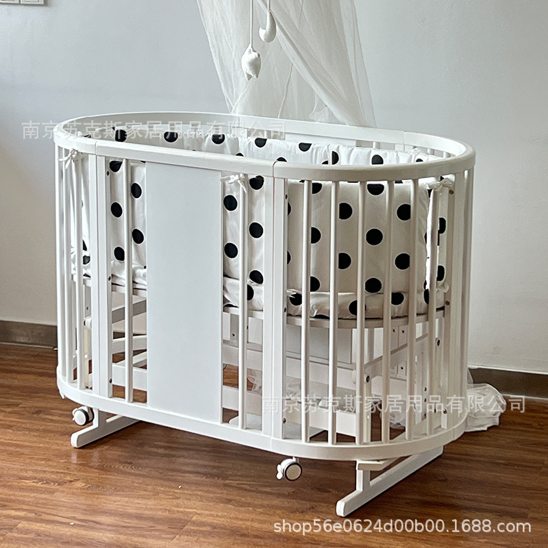 Скандинавская детская кроватка из массива дерева для новорожденных, многофункциональная кровать для малышей, съемная и разборная, большая кровать, белая, популярная круглая кровать