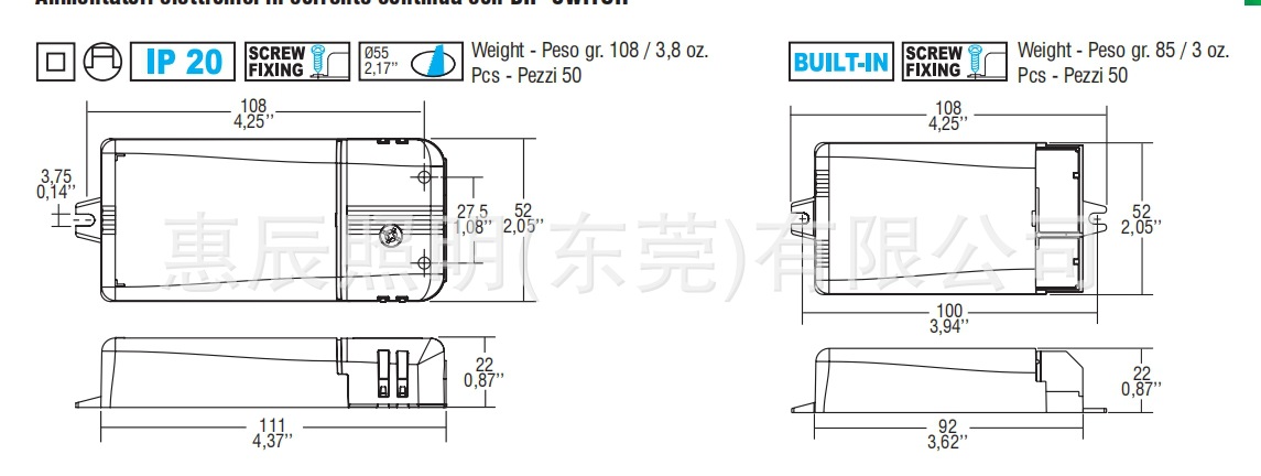 Итальянский блок питания/драйвер/трансформатор TCI LED 122201UNIVERSALE 20 для управления светильниками Fire Bull