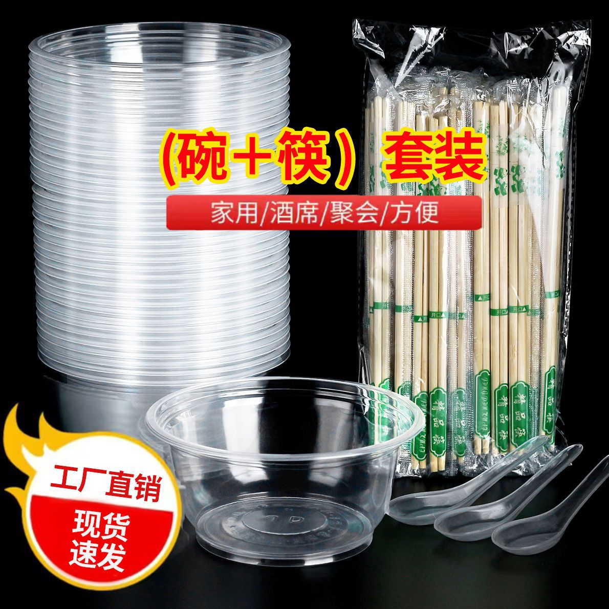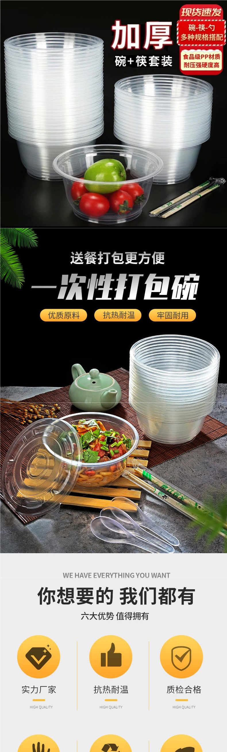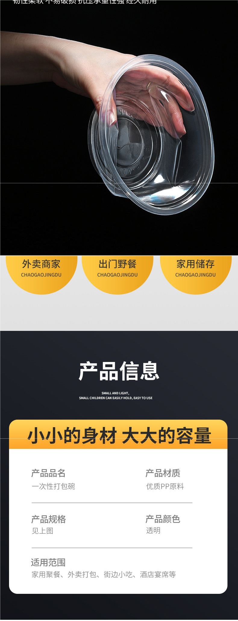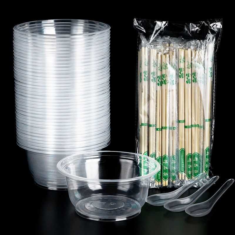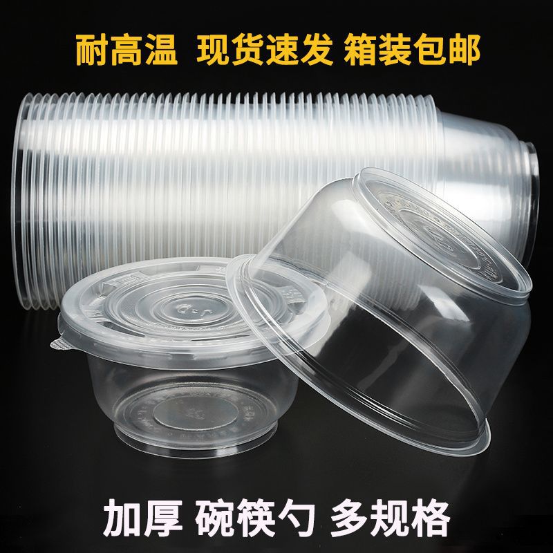 Одноразовая посуда, утолщенная пластиковая миска, упакованная коробка для быстрого питания на вынос с крышкой, бытовой небольшой ланч-бокс, круглая суповая миска, оптовая продажа
