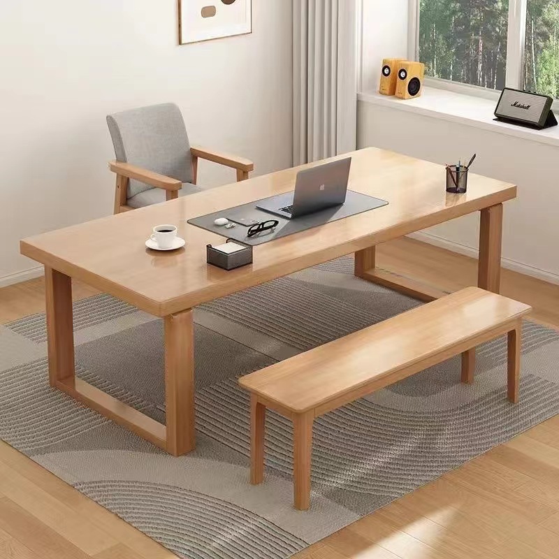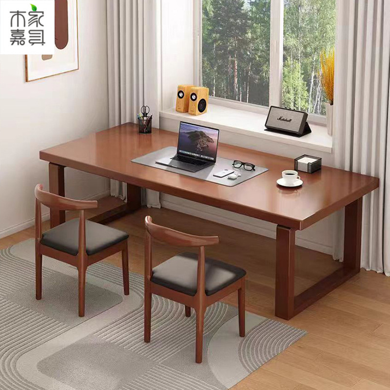 Утолщенный компьютерный стол, двойной стол из цельного дерева, длинный стол, простой офисный стол, настольный конференц-стол, письменный стол в стиле ретро.