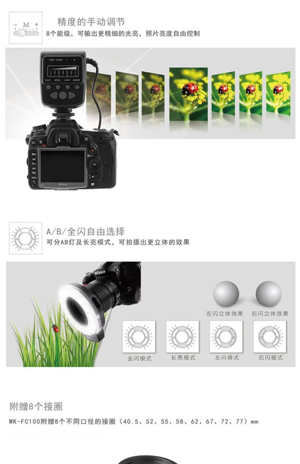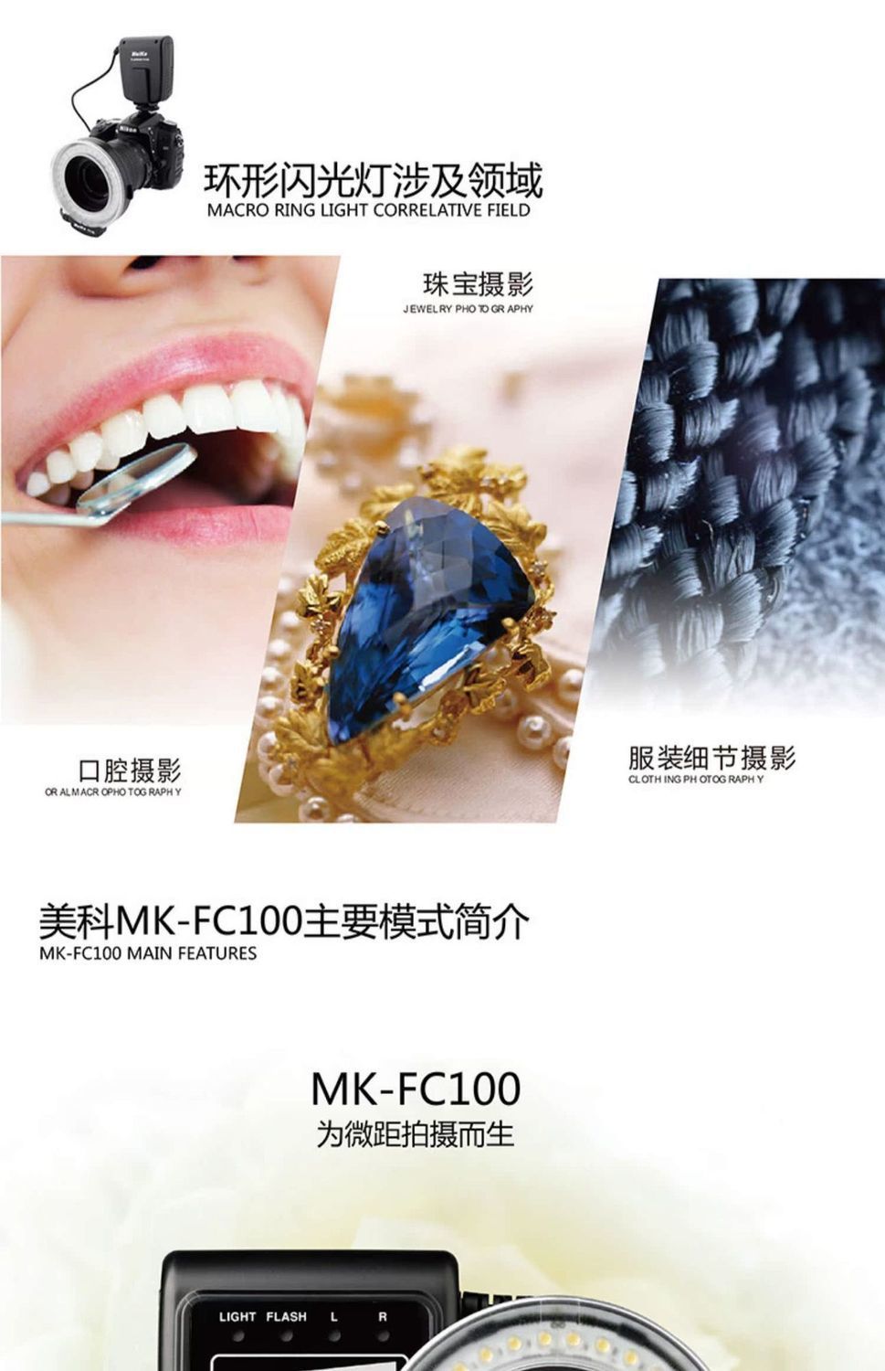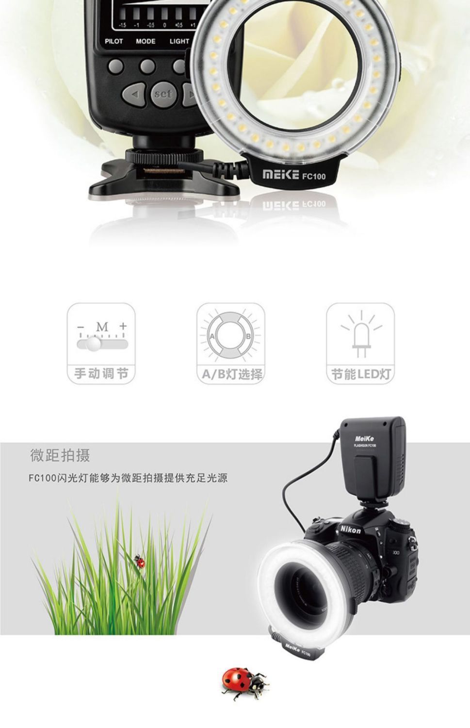 MEKE MK-FC100 кольцевой макросветодиодный заполняющий светильник, универсальный небольшой постоянный свет для кино и телевидения