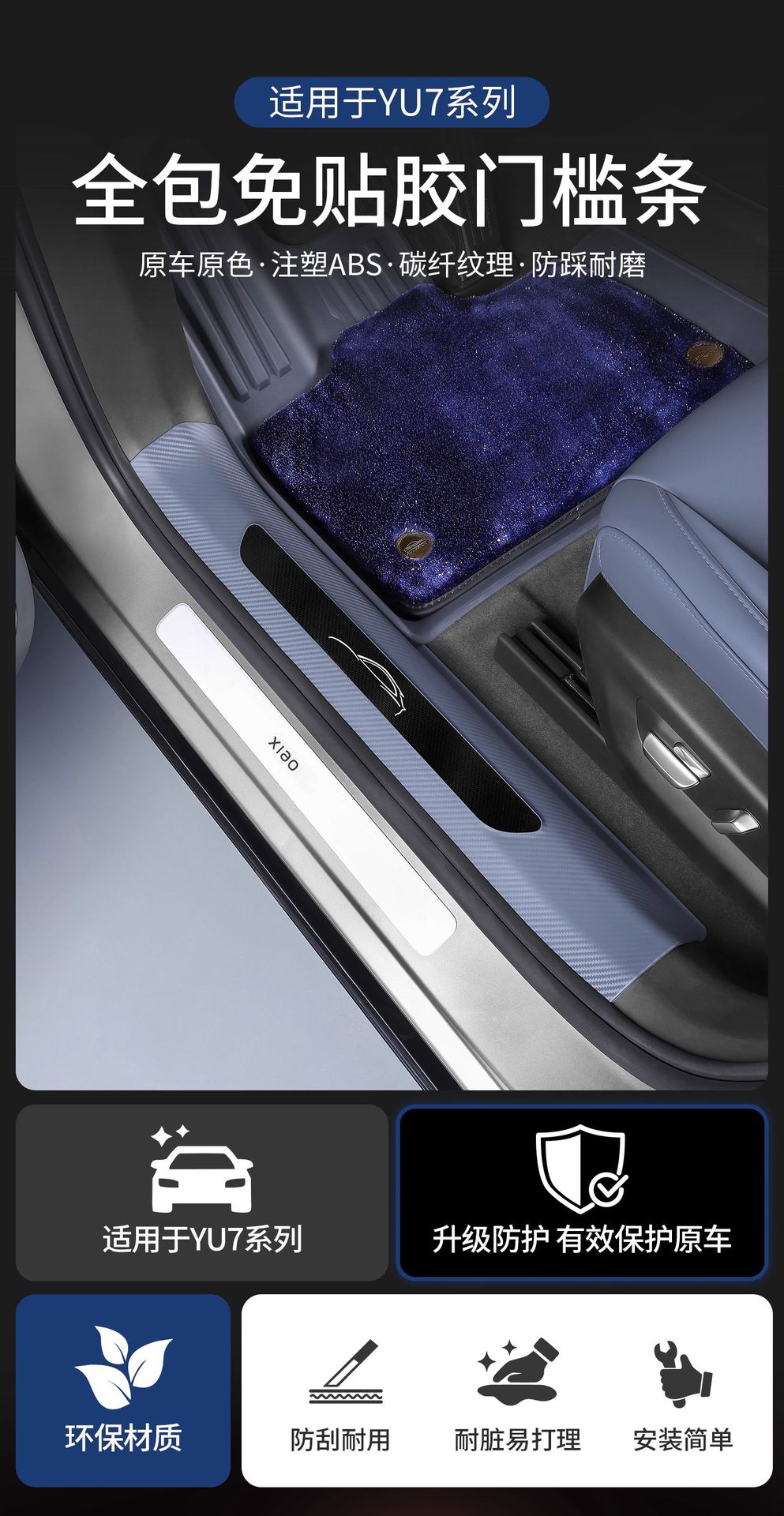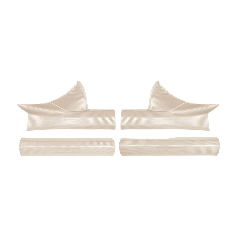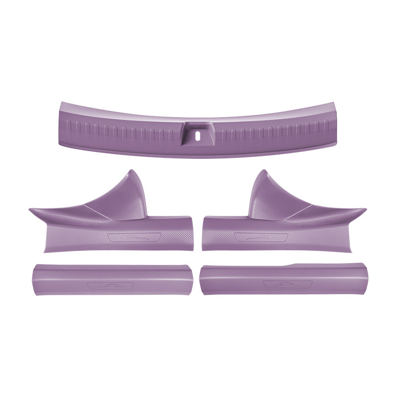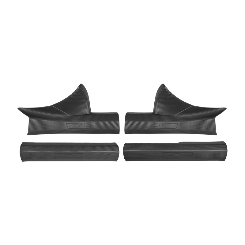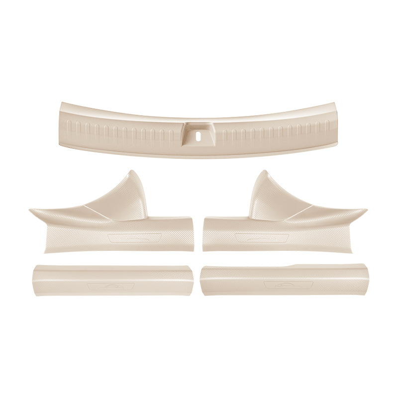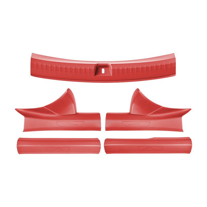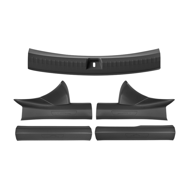 Новый улучшенный комплект из пяти накладок на пороги YU7 без клея с рисунком под карбон, включая коврик для прихожей и защиту от царапин на багажник.